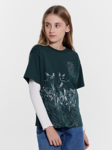 Футболка верхняя изготовлена из трикотажного кулирного полотна и трикотажного полотна рибаны.