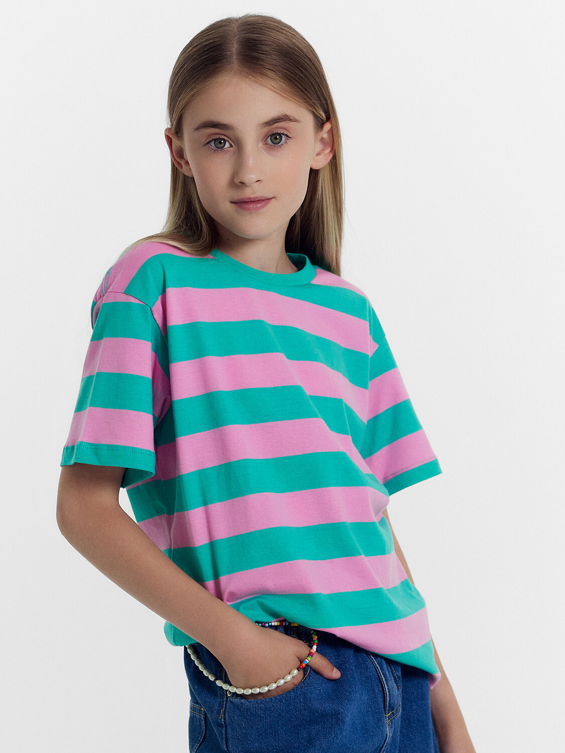 Стильная детская футболка для девочек из высококачественного хлопка. Модель прямого силуэта. Рукава короткие, линия плеча спущена. Горловина круглой формы из рибаны. Благодаря красивому дизайну, такая футболка сможет выгодно подчеркнуть индивидуальность своей обладательницы и стать ярким акцентом образа. В ассортименте представлены различные модели, цвета и фасоны. Неважно, предпочитает ли ваша малышка классику или яркие насыщенные оттенки, у нас вы всегда сможете найти подходящий вариант. Не упустите возможность обновить гардероб маленькой принцессы модной и практичной хлопковой футболкой!