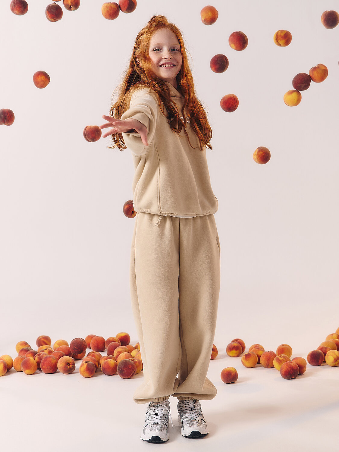 Худи для девочек, свободного силуэта (оверсайз), с капюшоном. Горловина округлой формы. Капюшон со средним швом, на подкладке из основного полотна. Плечо спущено, рукав втачной длинный. Боковые швы перенесены вперед. По низу рукава отрезная манжета из рибаны.