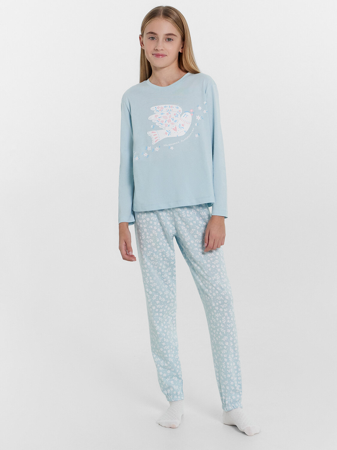 Уютный комплект для девочек из высококачественного хлопка. Модель состоит из джемпера и брюк. Горловина круглой формы. Рукава длинные. Брюки длинные, немного заужены к низу. Натуральное волокно в составе изделия отличается особой мягкостью и приятной на ощупь текстурой, бережно окутывая нежную детскую кожу. Ткань обладает превосходной гигроскопичностью, активно впитывая и отводя влагу, что помогает поддерживать оптимальный микроклимат и предотвращает перегрев. Конструкция пижамы продумана с учетом особенностей детской анатомии. Свободный, не стесняющий движений крой, эластичный пояс обеспечивают максимальную свободу и комфорт во время сна. Широкий размерный и цветовой ряд. Лучший выбор на любой сезон года!