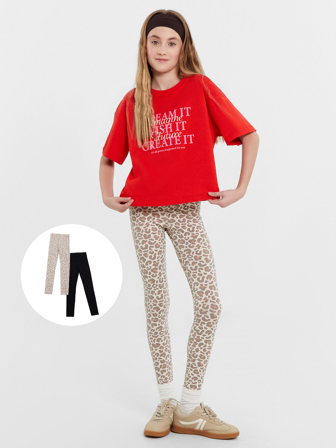 Легинсы для девочек мультипак (2 шт.) из высококачественного хлопка. Длина легинсов до щиколотки, модель плотно облегает ножки по всей длине. Эластичная тесьма в поясе не давит, но хорошо удерживает легинсы на талии. Красивый и удобный вариант одежды на каждый день. Материал мягкий и комфортный, не стесняет движений, имеет деликатные швы. Лосины удобно сочетать с другими вещами в гардеробе маленькой модницы. Легинсы детские спортивные представлены в различных цветах с принтами и рисунками. Если вы в поиске комфортного и универсального варианта на каждый день, легинсы от Mark Formelle точно понравятся вам и вашей девочке. Легинсы отлично тянутся и хорошо садятся на любую детскую фигуру. К таким легинсам для девочки легко и просто можно подобрать красивый и стильный верх из нашей линейки. Порадуйте своего ребенка красивой детской одеждой от Mark Formelle!