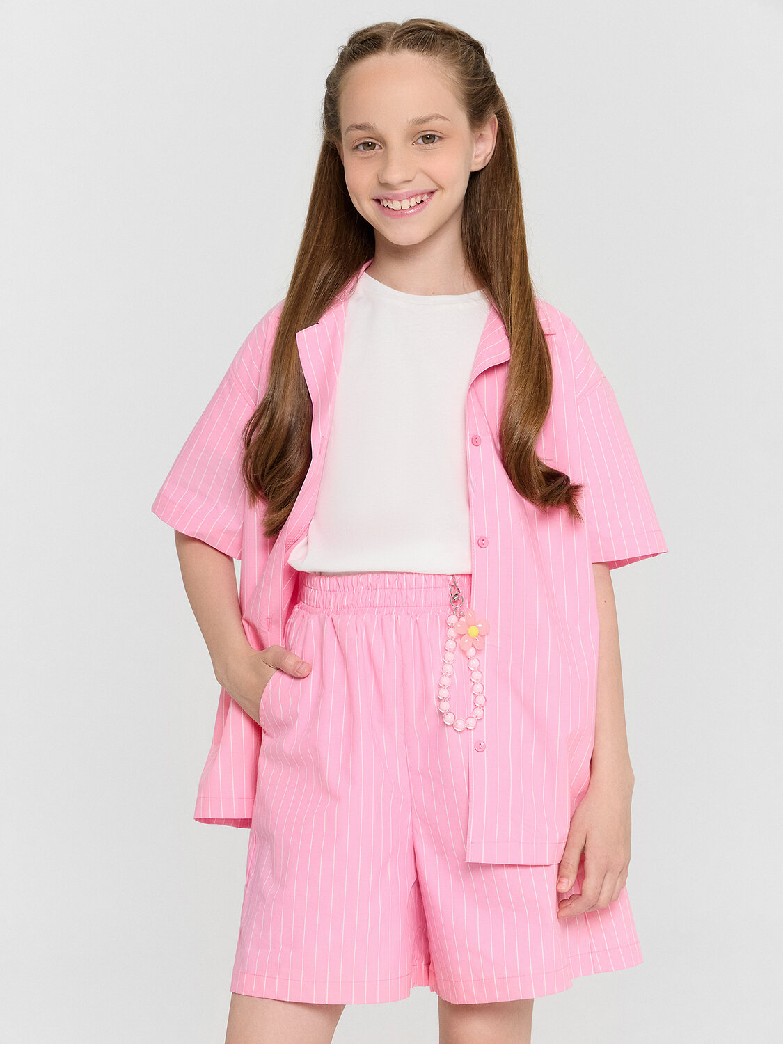 Шорты с посадкой на талии прямого силуэта. Пояс отрезной с резиной внутри 50RV, отстрочен. По переду обработаны карманы «хулиганы». Низ изделия застрочен швом в подгибку.