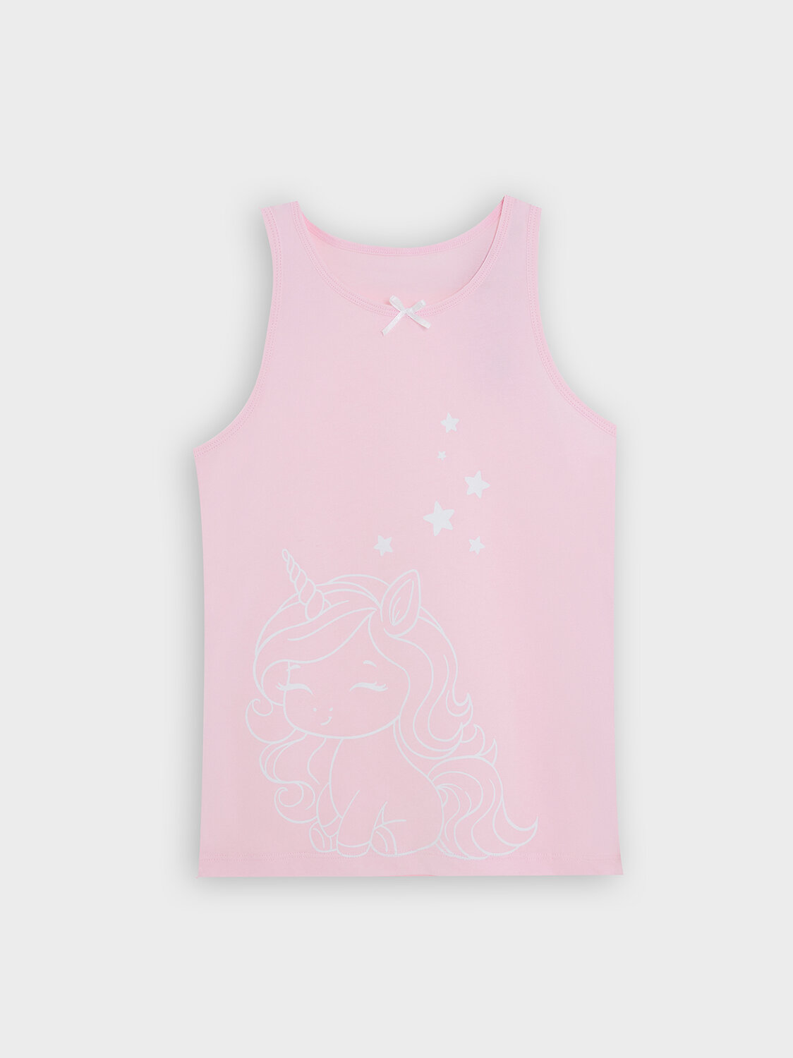 Майка для девочек, выполненная из трикотажной кулирки. Длина до середины бедер. Силуэт полуприлегающий. Горловина круглая. Универсальная майка!