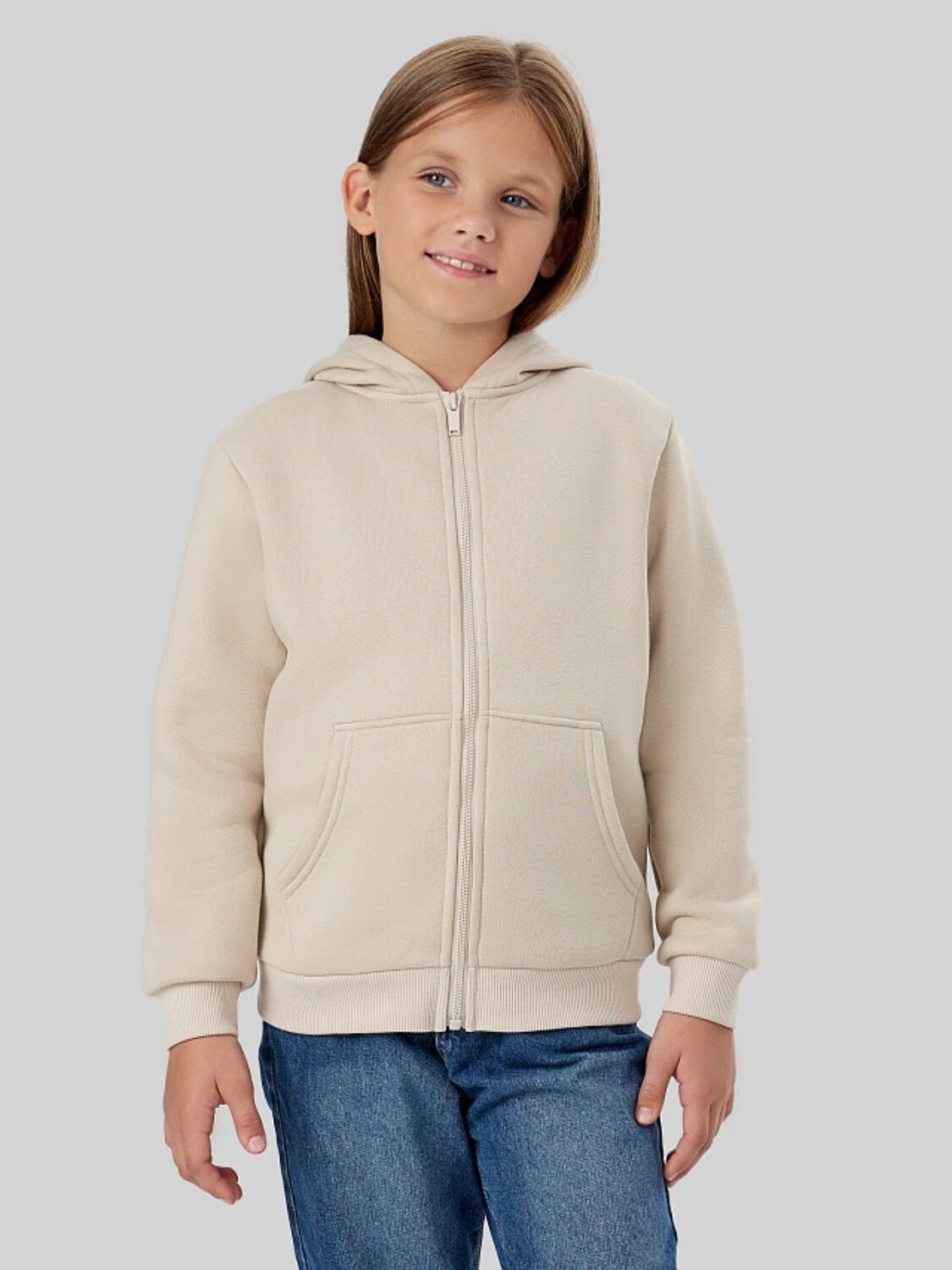 Жакет из трикотажного футера с теплым подчесом. Спущенная линия плеча гарантирует свободу движений. Прямой свободный силуэт, уютный капюшон, длинные рукава на манжетах, удобный карман-кенгуру, центральная застежка на молнию – эта модель наверняка понравится вашей девочке.
