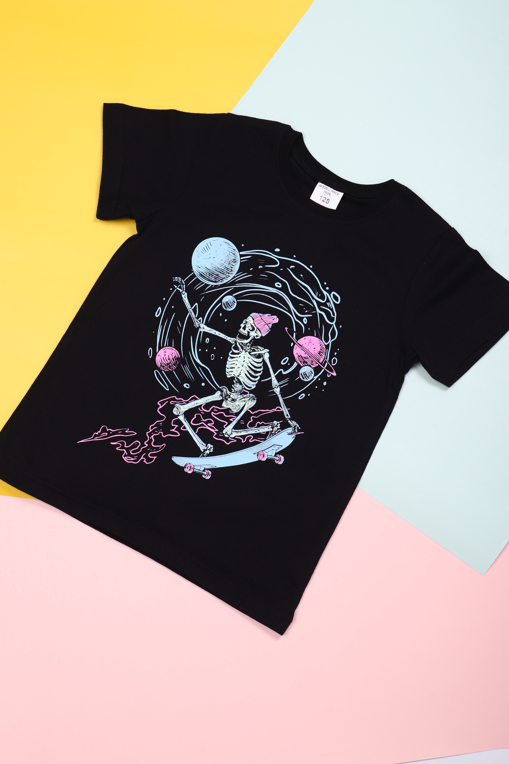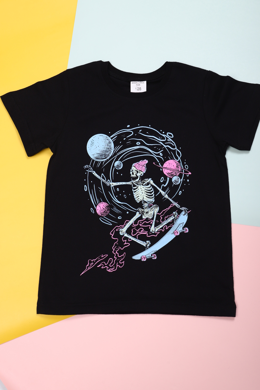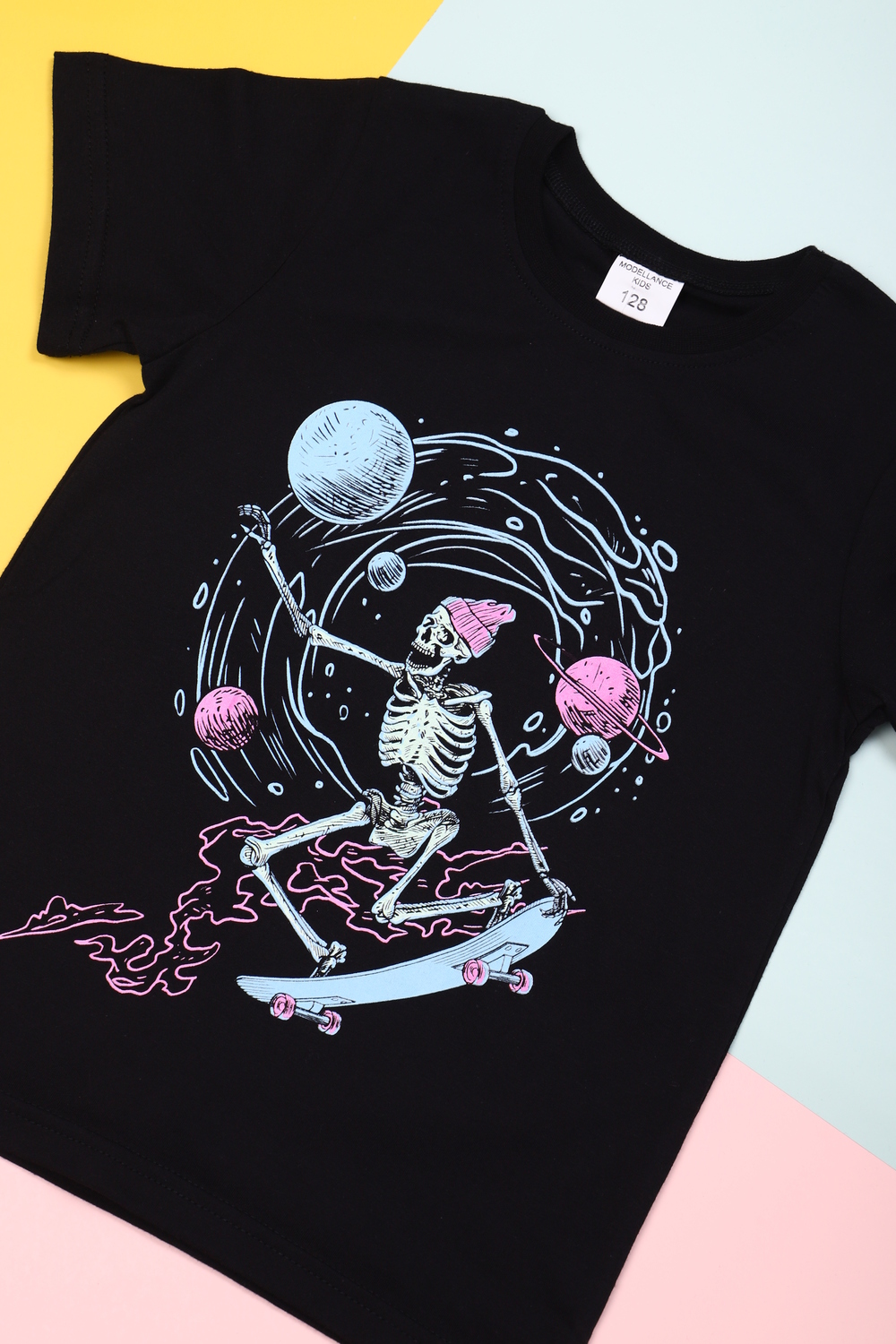 Футболка детская для мальчиков. Детская футболка подарит детям хорошее настроение. Футболка подойдет как малышам, так и подросткам.Так же футболка отлично подойдет для любого праздника. Сшита из качественного 100% хлопка. Дышащая ткань обеспечит детям полный комфорт. Вашим детям будет удобно заниматься спортом, активно двигаться, бегать и прыгать. Также отлично подойдет для детского сада, занятий физкультурой и тренировок. Цвет: черный; Материал: кулирка;кулирка; Состав: 100% хлопок.