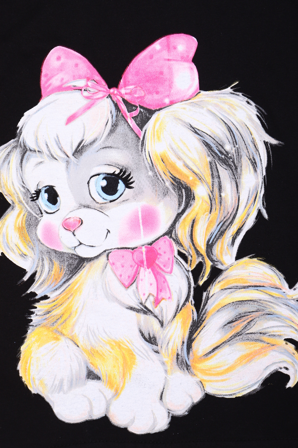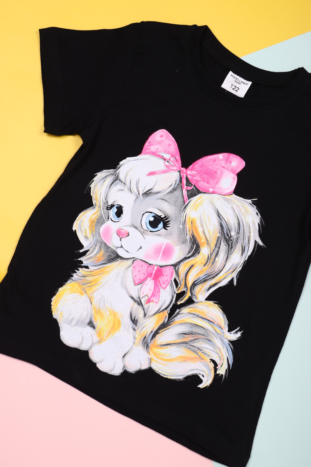 Футболка детская для девочек. Детская футболка подарит детям хорошее настроение. Футболка подойдет как малышам, так и подросткам. Так же футболка отлично подойдет для любого праздника. Сшита из качественного 100% хлопка. Дышащая ткань обеспечит детям полный комфорт. Вашим детям будет удобно заниматься спортом, активно двигаться, бегать и прыгать. Также отлично подойдет для детского сада, занятий физкультурой и тренировок. Цвет: черный; Материал: кулирка;кулирка; Состав: 100% хлопок.