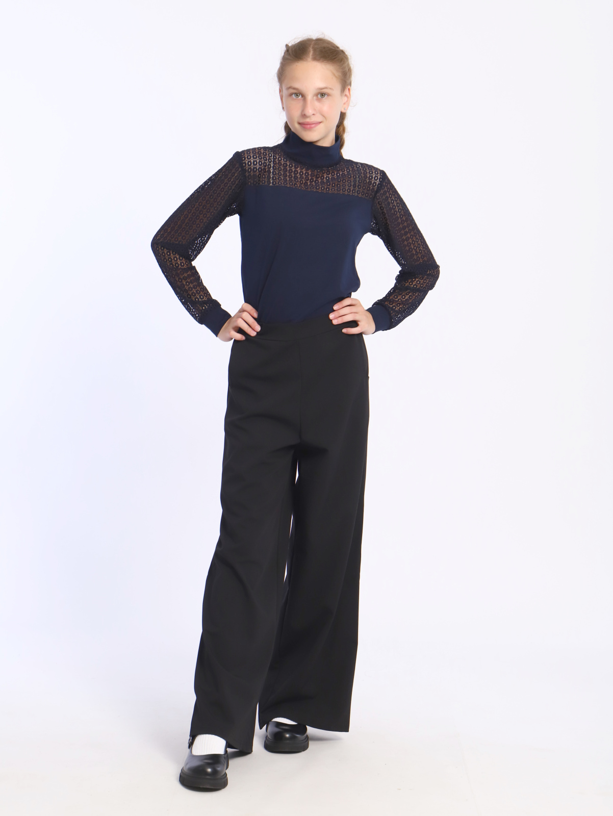 Посадка кофты на девочку прямого силуэта. Однотонную кофточку отлично дополнят лосины или леггинсы на девочку, юбки и шорты для подростка, кюлоты - укороченные брючки, также классические брюки, кардиган, джемпер, жилетка, школьный пиджак, костюм.