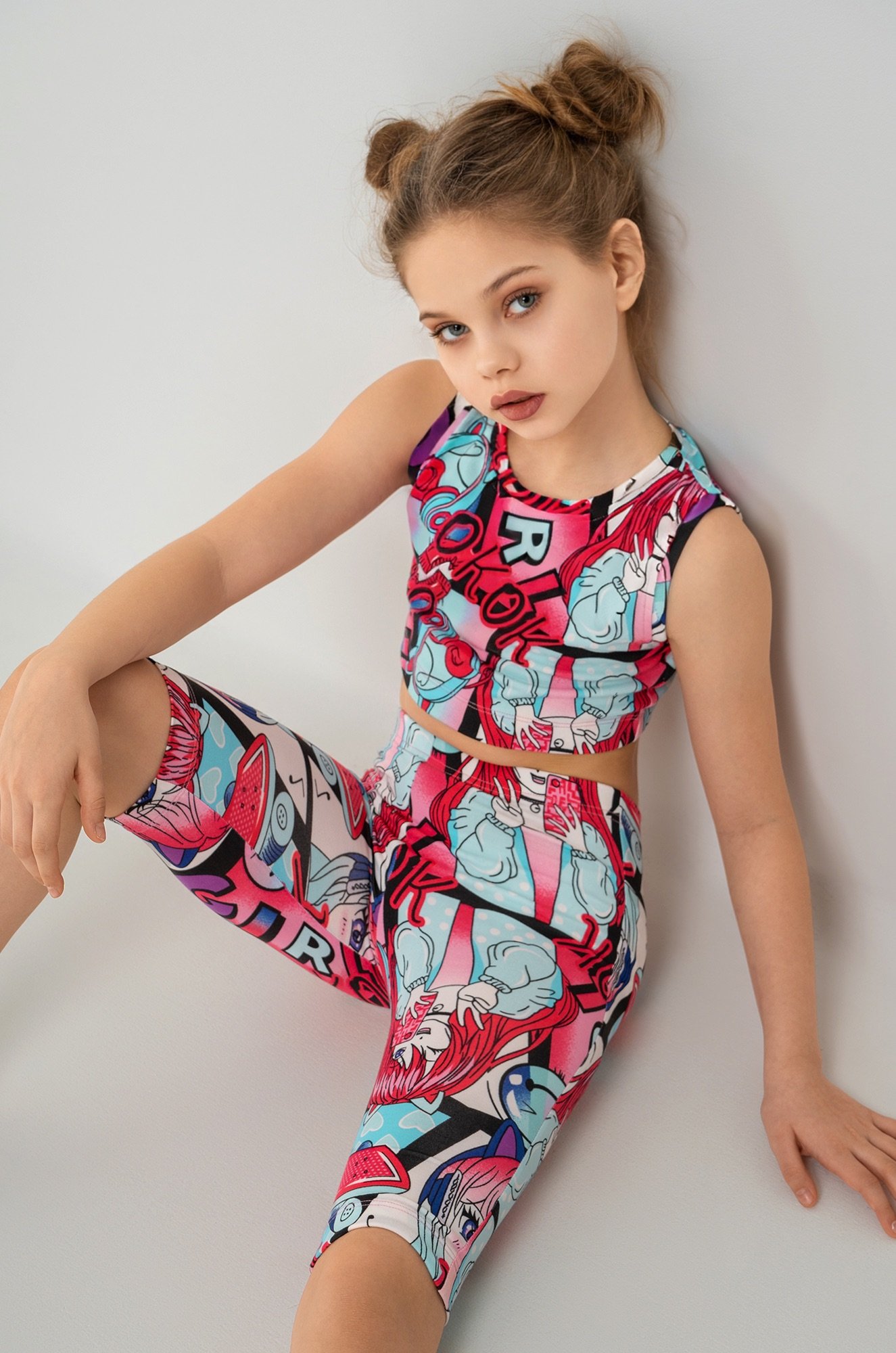 Детский летний костюм для девочек и девочек-подростков выполнен из эластичной и невероятно мягкой ткани бамбук. Короткий топ и бриджи для детей станут отличным решением для спорта и повседневных прогулок. Высокая посадка, мягкая резинка и плоские швы – всё для комфорта ребенка. Яркий рисунок поднимет настроение и зарядит энергией на весь день!