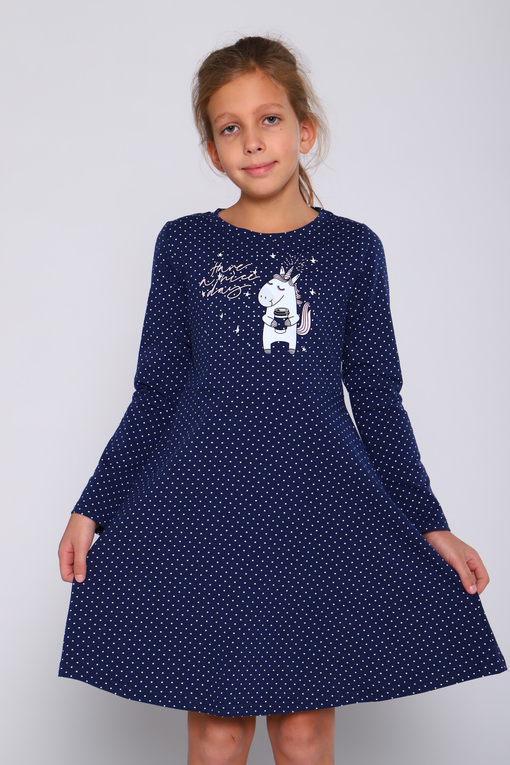 Это красивое и нежное платье для девочки обязательно оценят маленькие модницы. Идеально подходит для повседневной носки дома и в детский сад, также для летних прогулок, для похода в гости или на праздник. Данная модель сшита из качественного трикотажа с добавлением в состав хлопка и лайкры, используемый материал не теряет форму после многократных стирок, мягкий и приятный к телу, устойчив к износу, не закатывается. Для сохранения первоначальных свойств изделия, важно соблюдать рекомендации по уходу. Цвет: темно-синий; Материал: кулирка с лайкрой;кулирка с лайкрой; Состав: 92% хлопок, 8% лайкра.