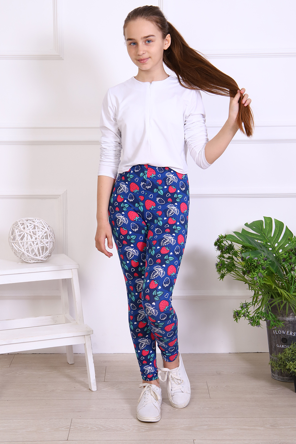 Леггинсы для девочек из трикотажного полотна кулирка с лайкрой, облегающие, длинные, сверху на резинке шириной 2.5 см. Низ и верх подогнуты. Цвет: василек; Материал: кулирка с лайкрой;кулирка с лайкрой; Состав: 97% хлопок, 3% лайкра.