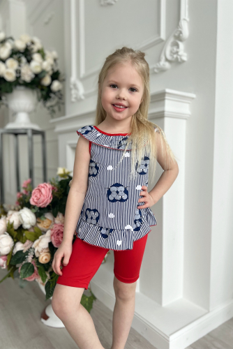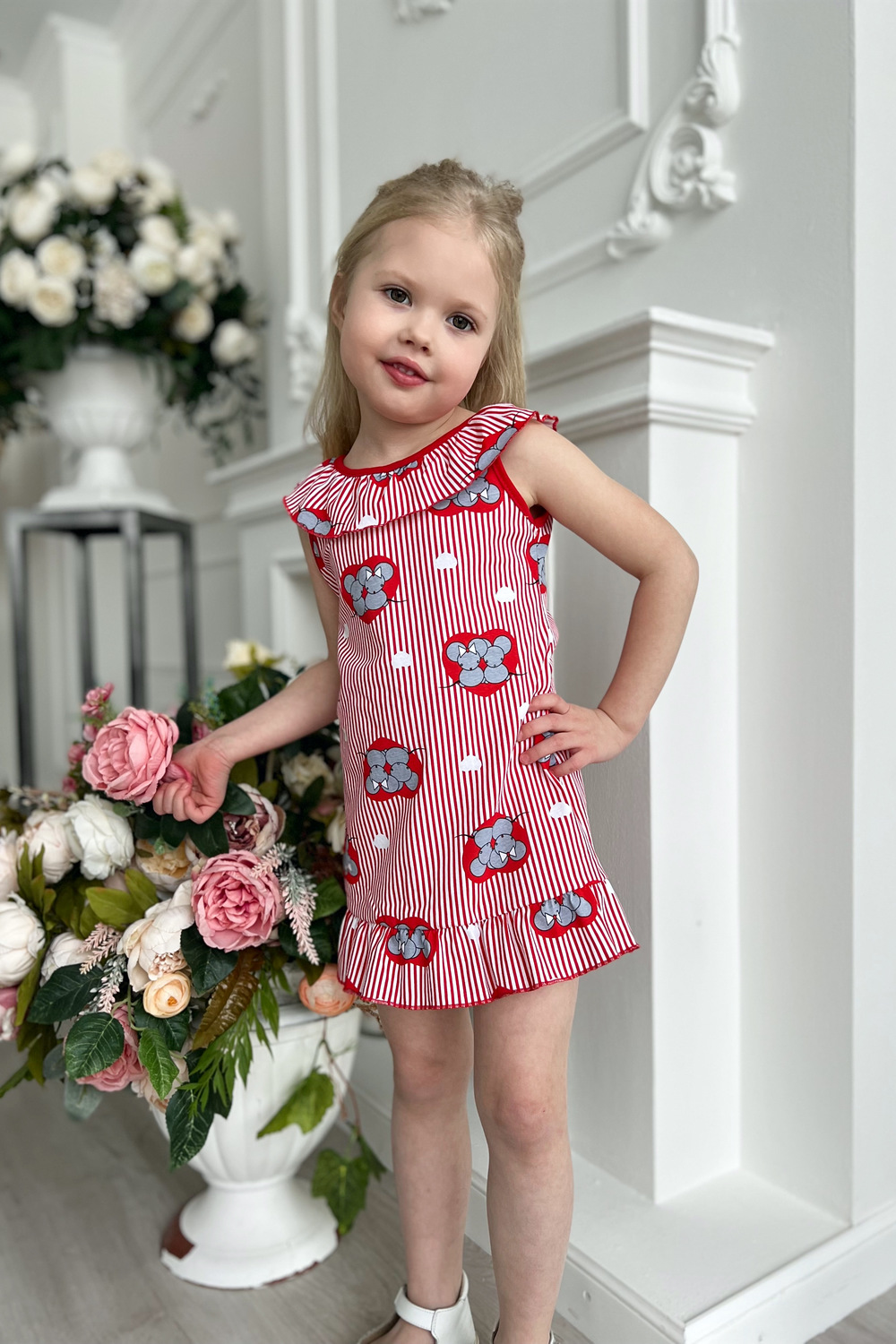 Сарафан для девочки, по горловине и низу изделия оборки, на спинке завязки.