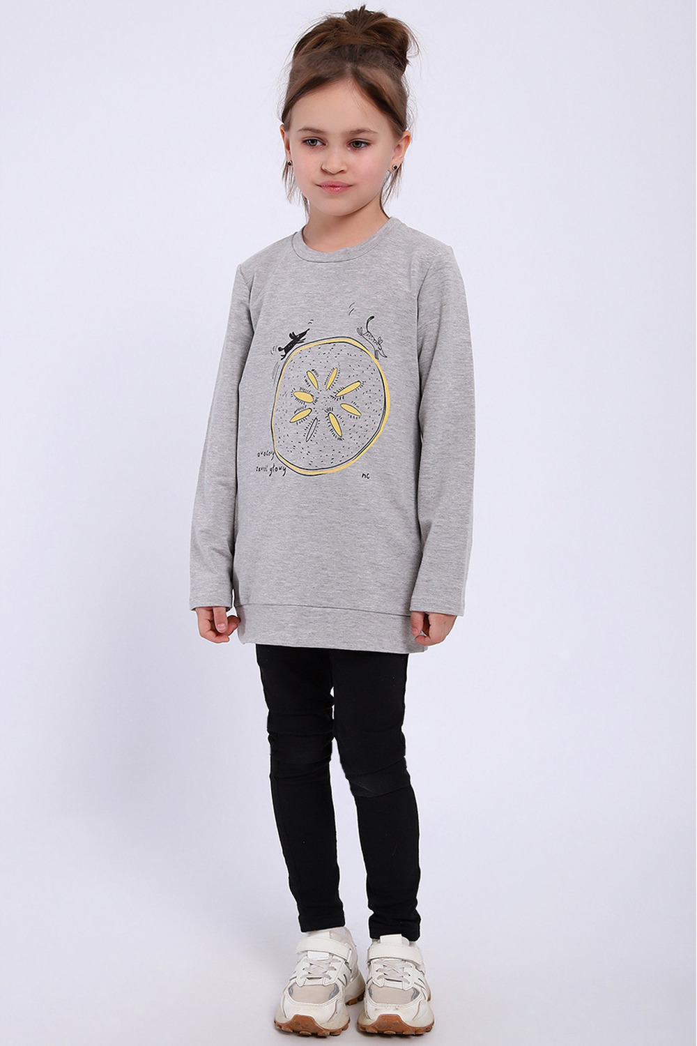 Толстовка из меланжированного футера с карманом, рукава втачные длинные. Цвет: серый меланж; Материал: футер 2-х нитка;футер 2-х нитка; Состав: 75% хлопок, 20% пэ, 5% эластан.