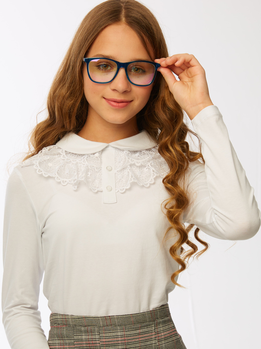 Блузка для девочки из трикотажного полотна с длинным рукавом, прилегающего