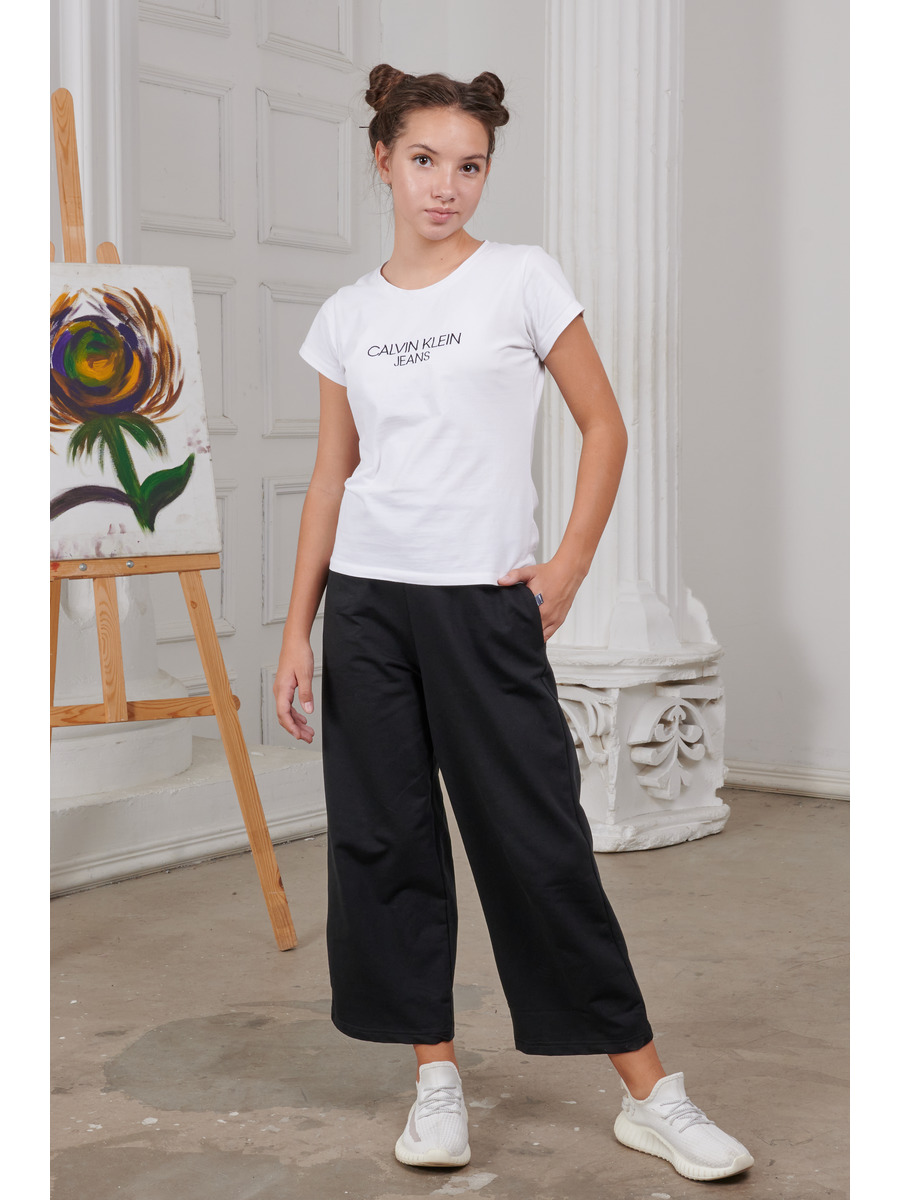 Брюки укороченные кюлоты, широкие, с карманами в боковых швах, с высокой талией. Пояс широкий, с эастичной тесьмой внутри и "гребешком"