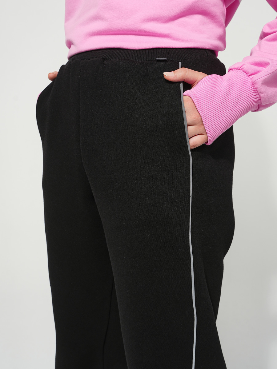 Боковые швы брюк со светоотражающим кантом, смещены в сторону передних половинок, в швах - карманы с мешковинами из хлопкового футера 2-нитки пл. 240 г/м2.