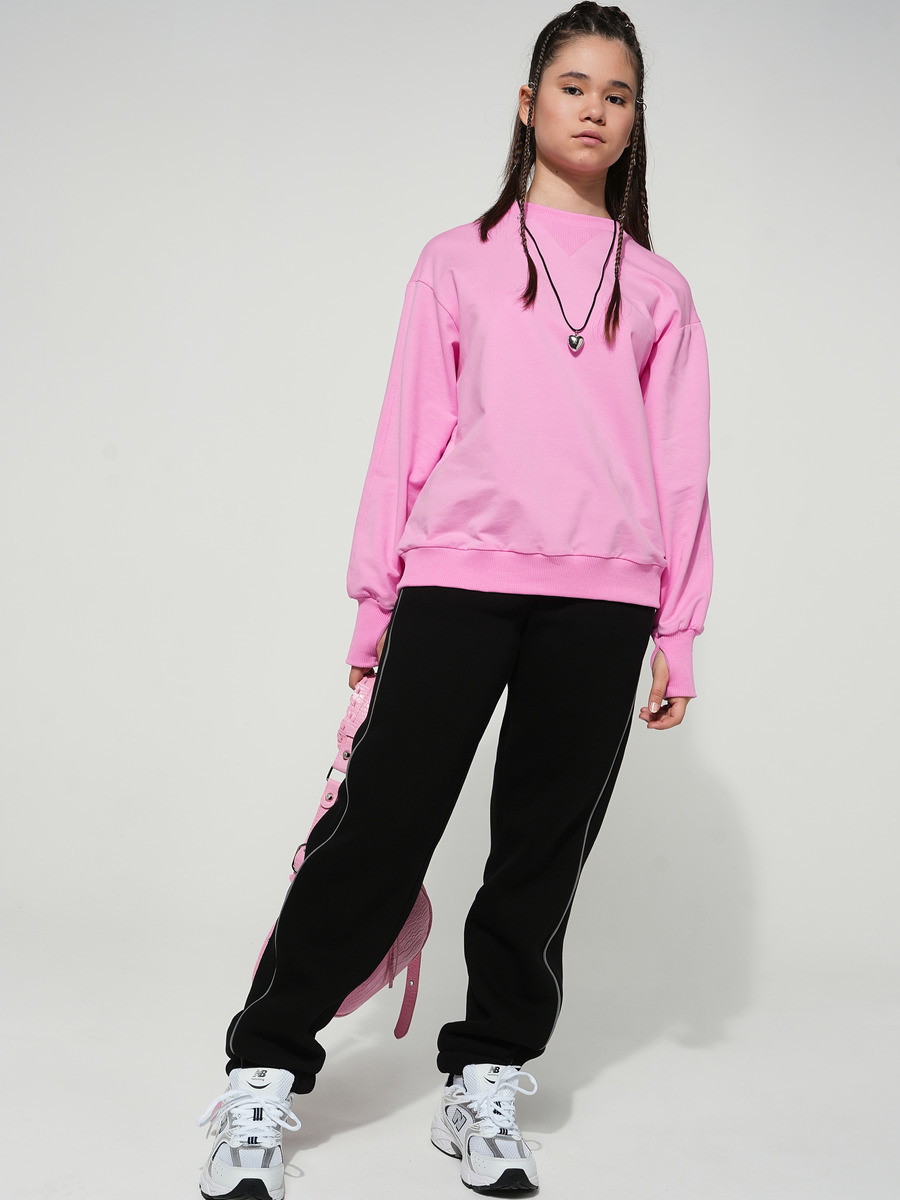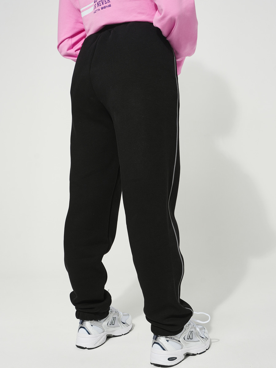 Коллекция "Осень-Зима 2024". Свободные трикотажные брюки "джоггеры" средней посадки для девочки для повседневной носки. Брюки выполнены из хлопкового футера 3-нитки с начёсом с добавлением эластана качества пенье пл. 333 г/м2.