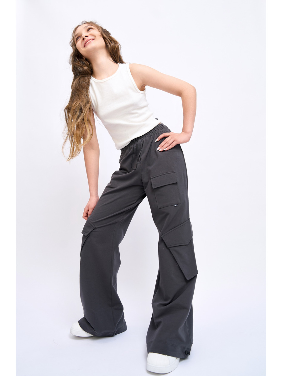Брюки карго для девочки из высококачественного хлопкового трикотажа – идеальный выбор для повседневных прогулок и спортивных занятий. Эти широкие брюки для подростка обеспечат комфорт благодаря материалу, подходящему для теплых и холодных дней. Свободные оверсайз брюки - популярная модель, которая отлично подойдёт под любой случай и стиль.Имеют удобную резинку на поясе, регулируемую длину и посадку
