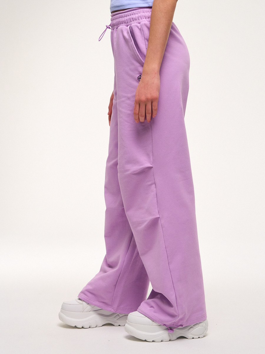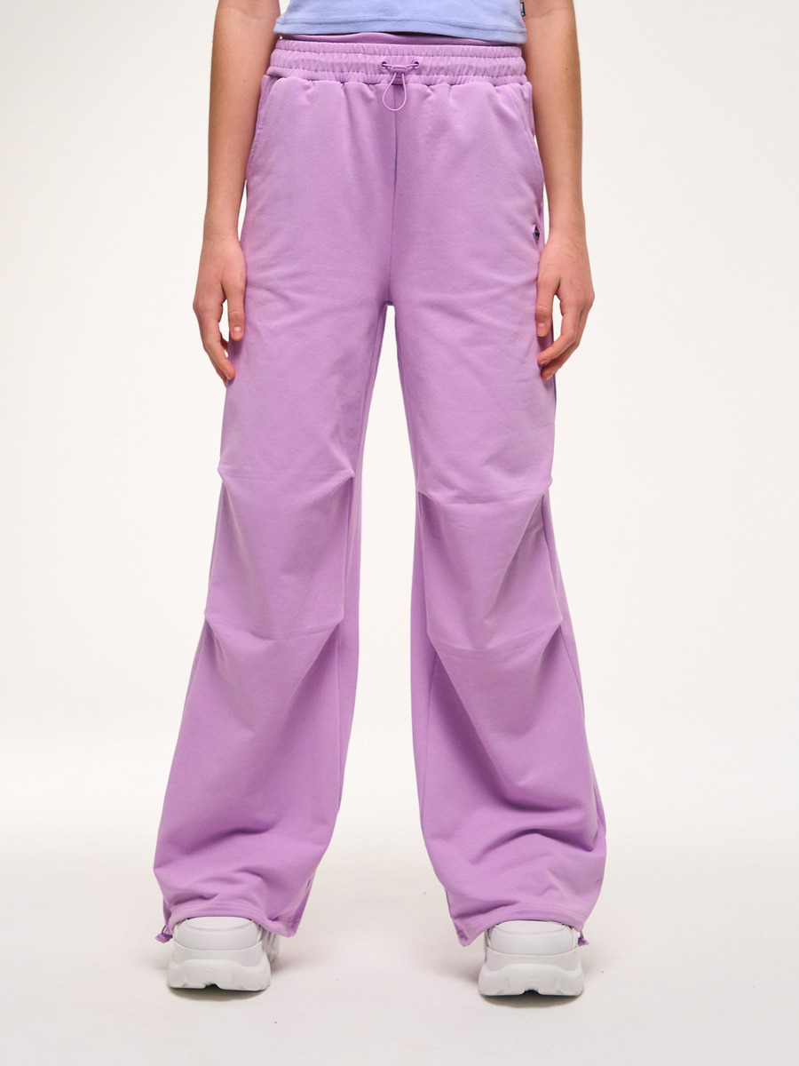 Брюки из трикотажа средней плотности. Пояс на резинке с регулируемыми шнурками для комфортной носки. По низу можно стянуть шнурком.