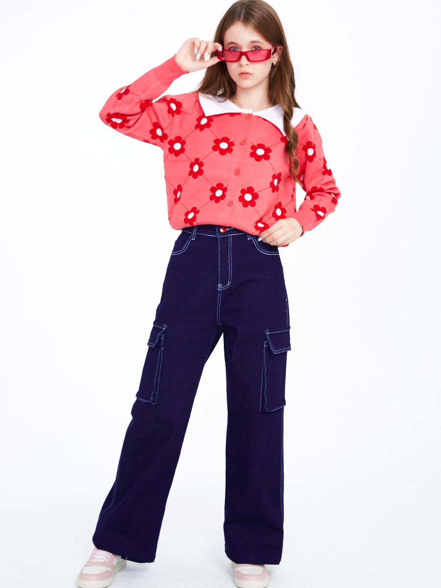 Джинсы с белой отстрочкой, прямого кроя с накладными карманами