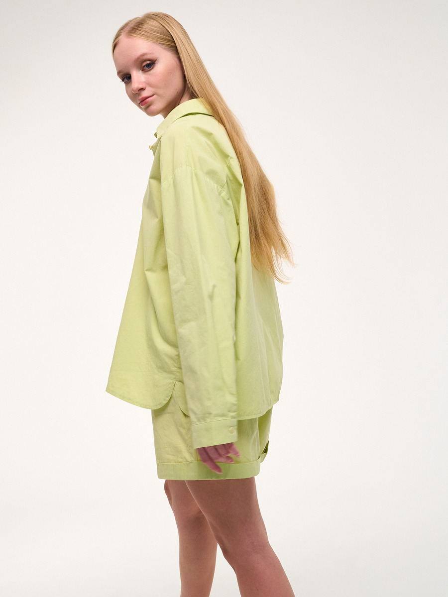 Комплект из легкого текстиля: рубашка с длинным рукавом и шорты. Свободный крой для любой фигуры.