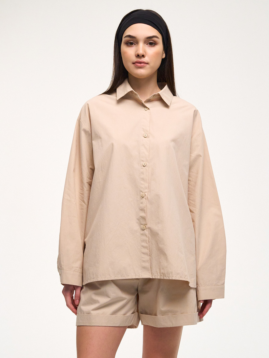 Комплект из легкого текстиля: рубашка с длинным рукавом и шорты. Свободный крой для любой фигуры.