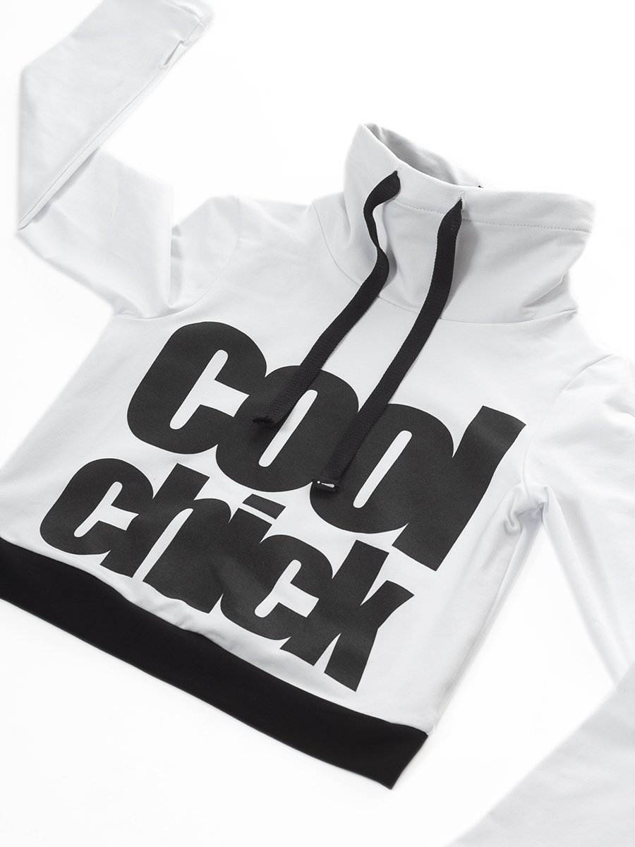 Комплект для хип-хопа из укороченного свитшота и объемных брюк. Горловина оформлена стойкой на кулиску и шнур. Рукав втачной длинный. Низ оформлен манжетой. Свитшот украшен эффектными принтами.
