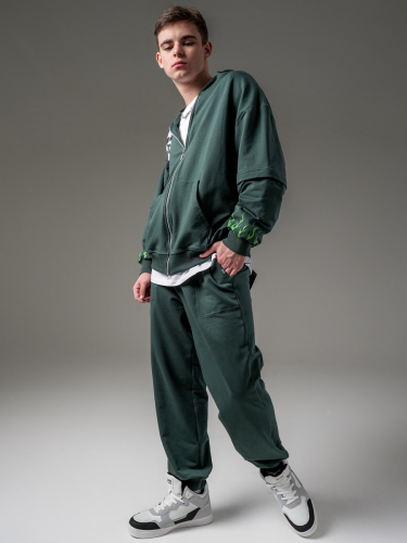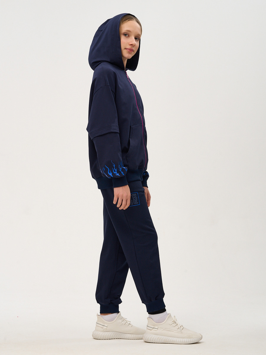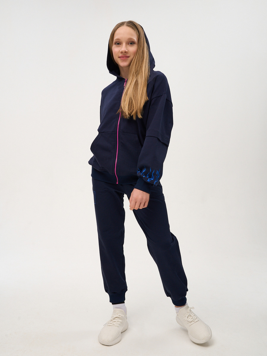 Костюм спортивный для девочки из премиального качественного хлопкового пенье футера 2-х нитки с лайкрой. Толстовка в японском стиле с капюшоном, застежка молния, карман "кенгуру", рукава с имитацией двухслойности, на манжетах, низ на поясе. Брюки зауженные на манжетах, пояс на резинке, карманы в швах. Комплект декорирован принтами на спинке, рукавах и правой передней половинке брюк в стиле анимэ.