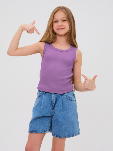 Майка прилегающего силуэта, с отрезными кокетками,с боковыми вставками на полочке и декоративными резинками.
