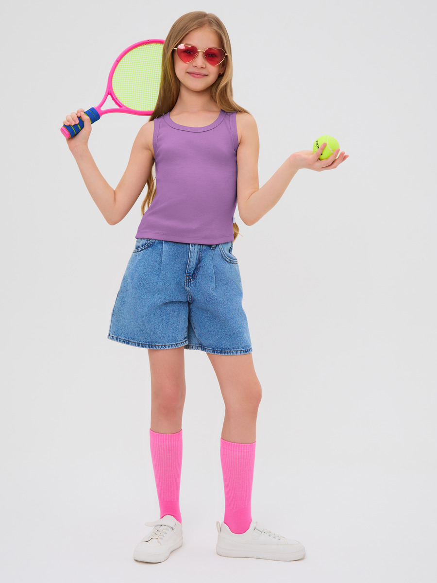 Майка для девочки из кашкорсе, облегающего силуэта чуть ниже талии.