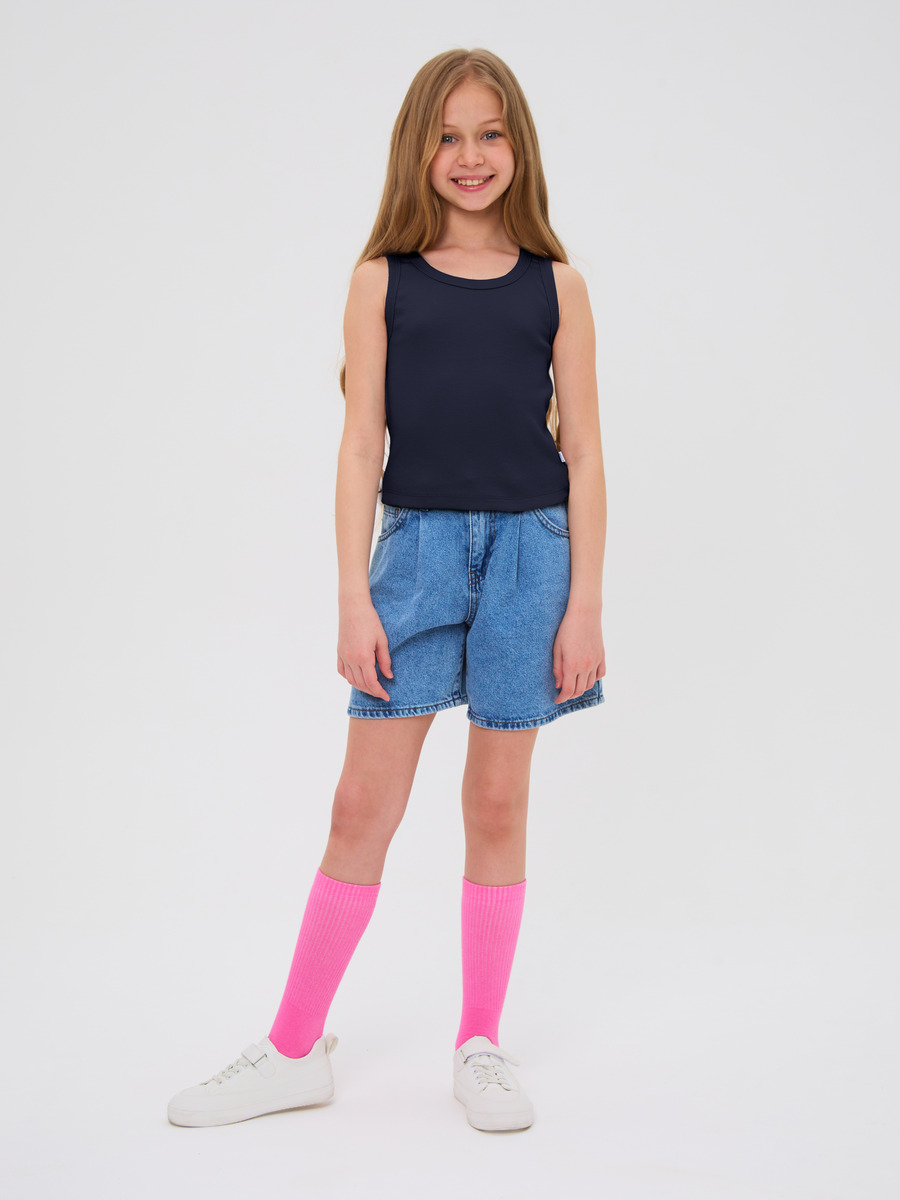 Майка для девочки из кашкорсе, облегающего силуэта чуть ниже талии.