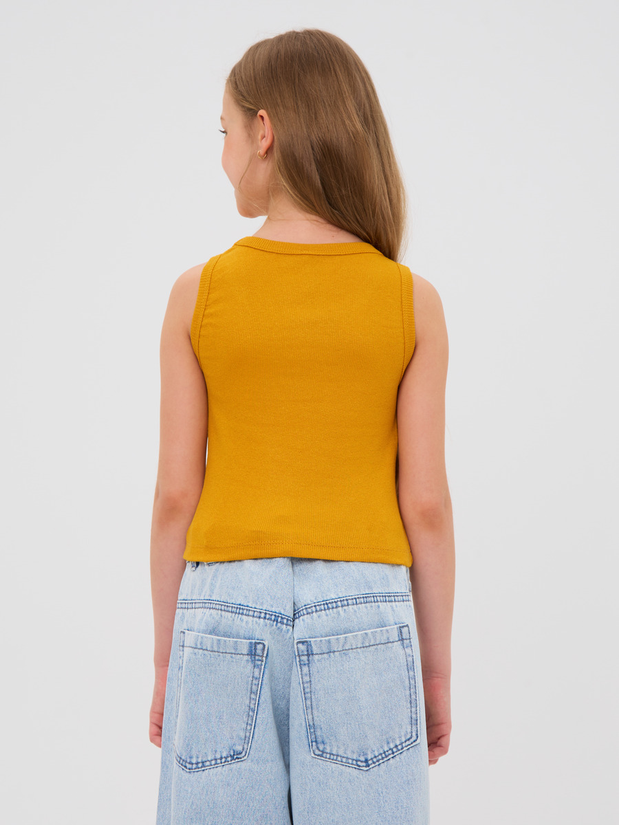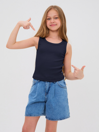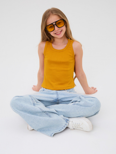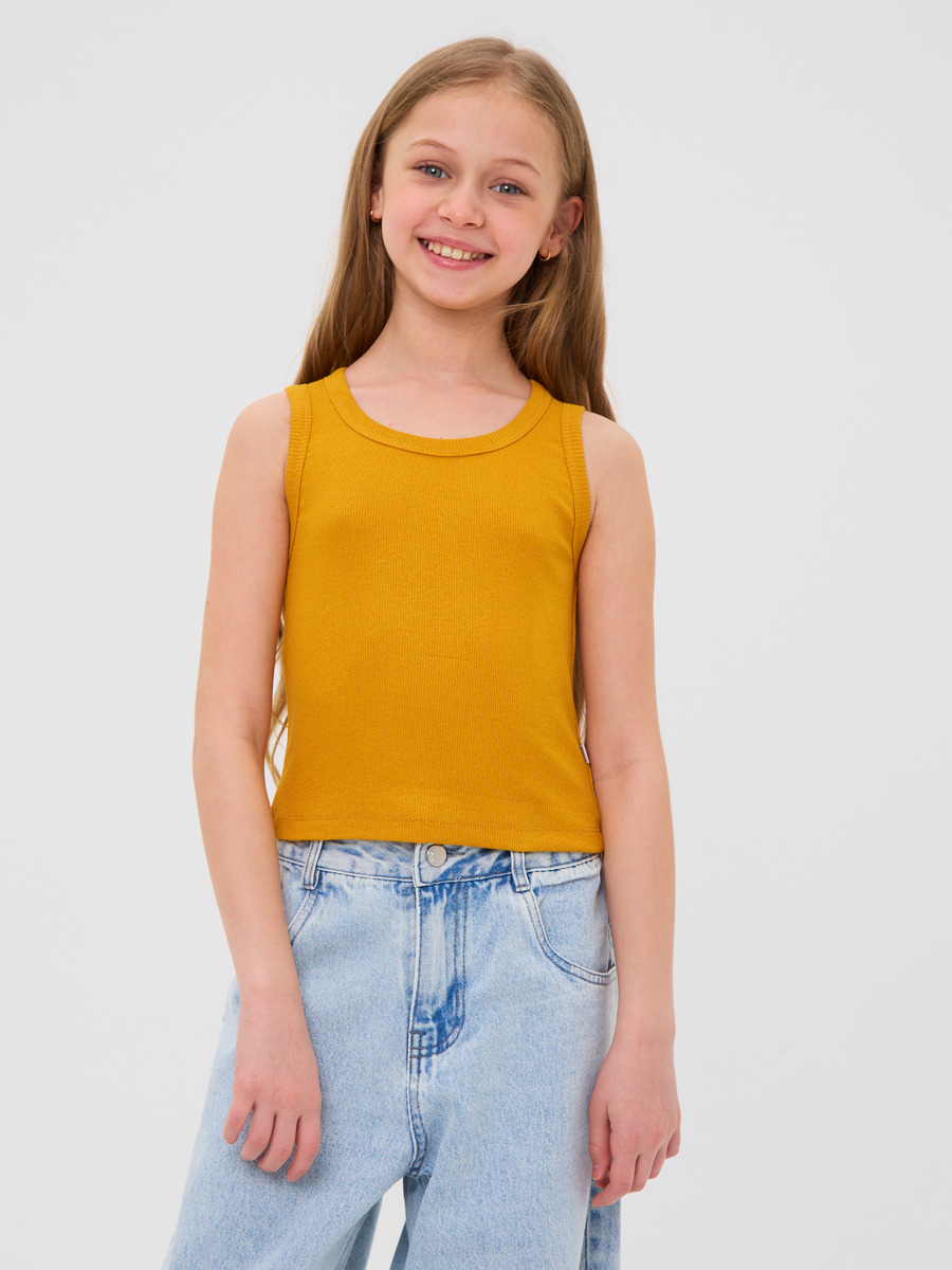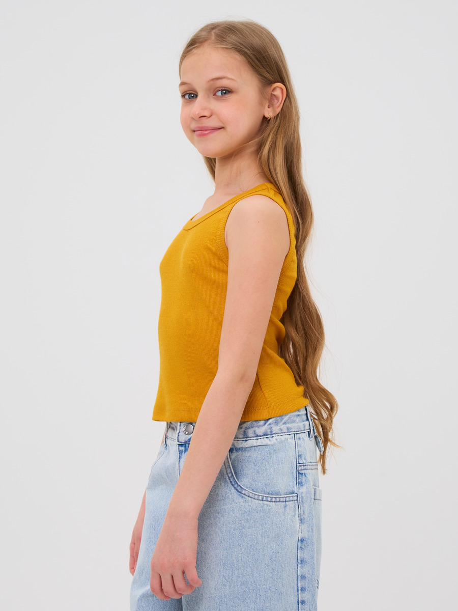 Майка для девочки из кашкорсе, облегающего силуэта чуть ниже талии.