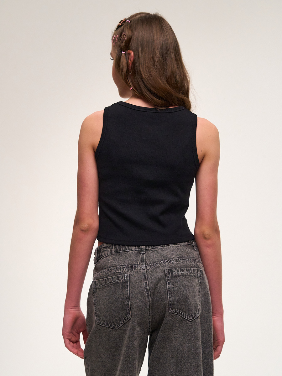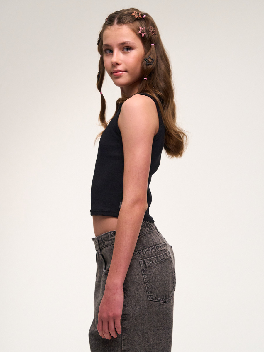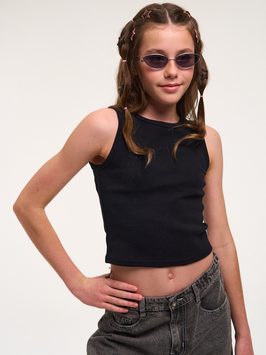 Кроп топ для девочки базовый - незаменимая вещь в летнем гардеробе тинейджера, который следит за последними трендами моды! Майка в рубчик выполнена из премиальной хлопковой ткани с добавлением эластана. Мы воплотили в ней все тенденции этого сезона: универсальный цвет, актуальный прилегающий укороченный крой выделят Вашего ребенка из толпы и подчеркнет его идентичность!
