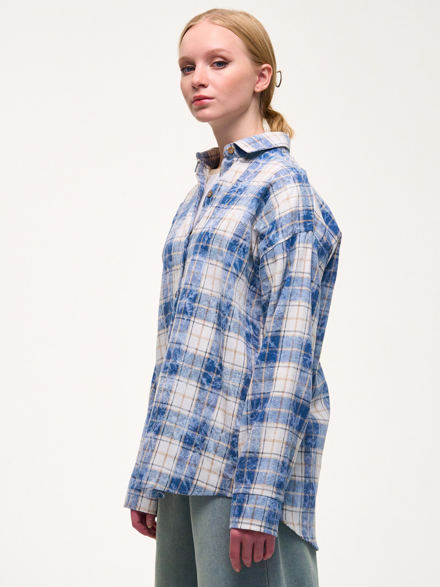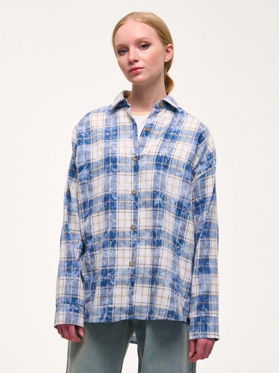 Рубашка из мягкой ткани в клетку. С эффектом потертости.