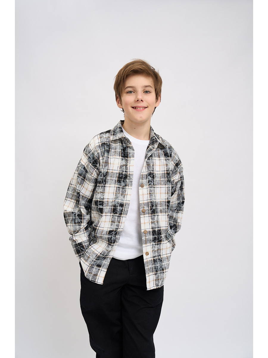 Универсальная базовая рубашка для мальчика свободного кроя выполнена из качественного хлопка. Дышащий материал рубашки обеспечит ребенку комфорт и удобство каждый день. Стильная рубашка имеет оверсайз фасон, поэтому не сковывает движений.Рубашка в клетку подходит как подросткам, так и детям. Отличное качество ткани обеспечивает длительное использование вещи без потери ее внешнего вида.Рубашка с эффектом потертости