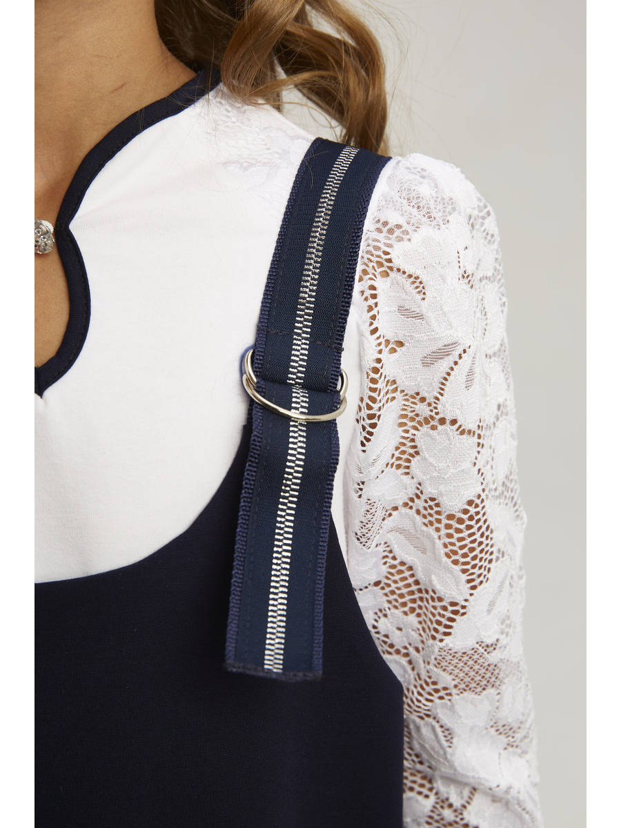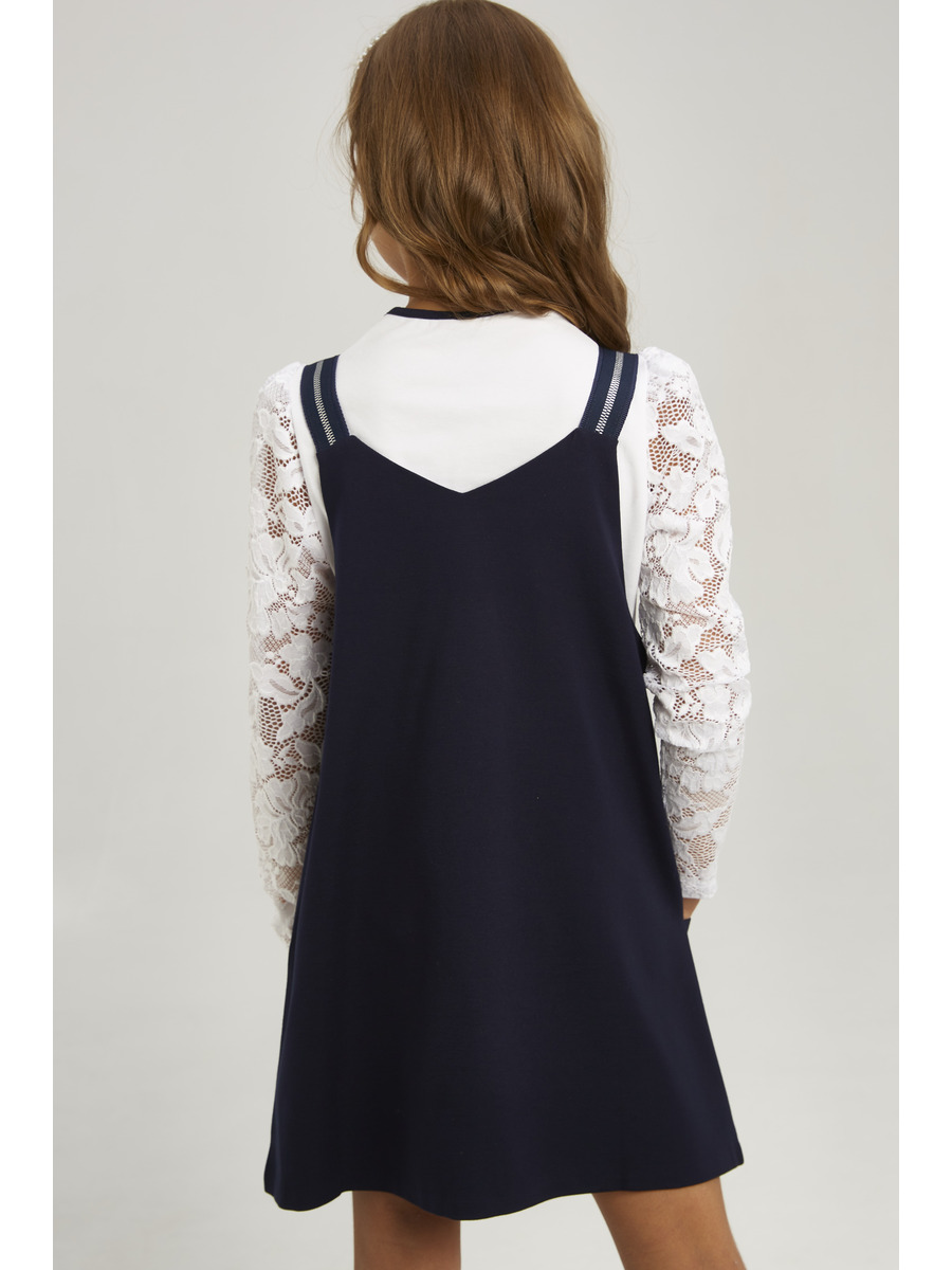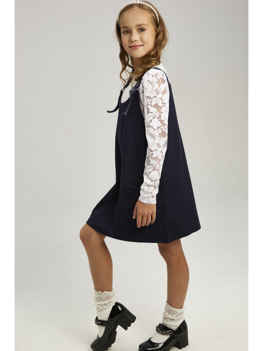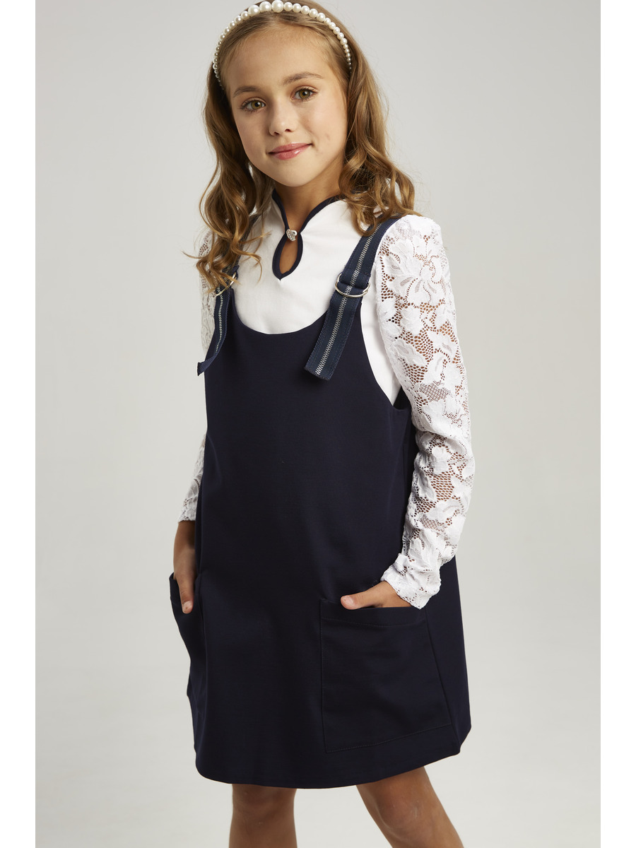 Сарафан для девочки из джерси А-силуэта, на бретелях, накладные карманы.