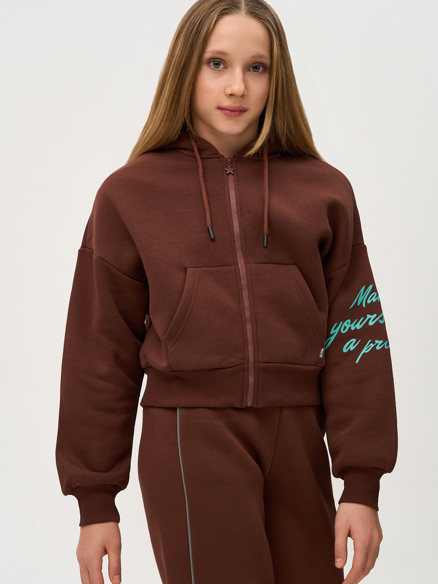 Коллекция "Осень-Зима 2024". Укороченная трикотажная толстовка "зипка" для девочки для повседневной носки из хлопкового футера 3-нитки с начесом с добавлением эластана пл. 250 г/м2.