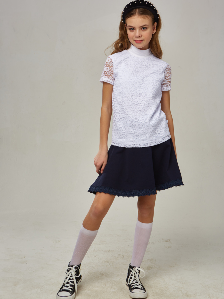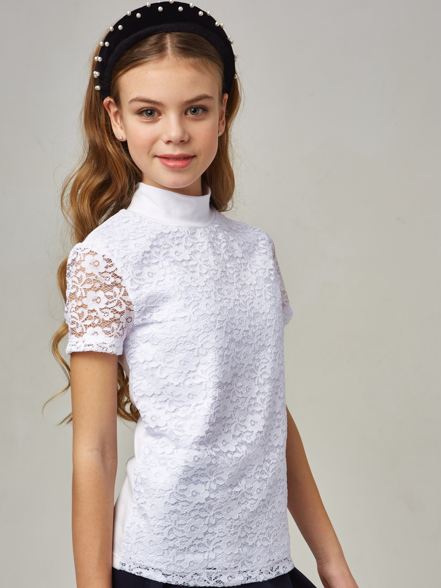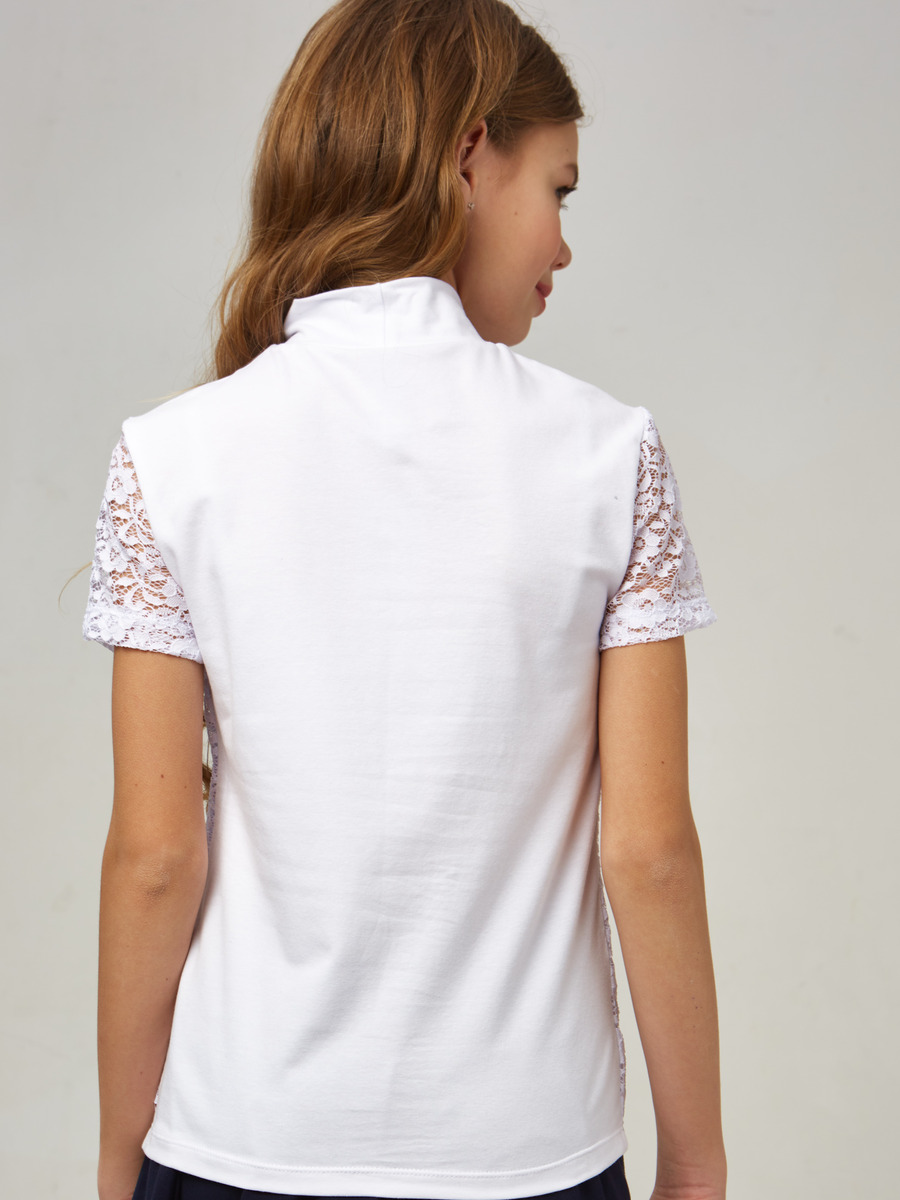 Водолазка из ажурного полотна. Рукав короткий втачной, горловина с воротником- стойка
