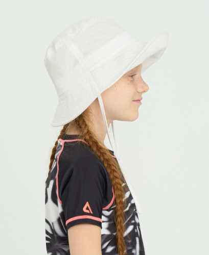 Панама детская сделана из хлопкового материала, как и подкладка. Модель дышащая, плотная и прочная. Панамка защитит голову от солнца и дополнит образ. Классический белый цвет всегда уместен, смотрится стильно, дорого и подойдет под одежду разных оттенков. Панама для девочки выполнена с удлиненной задней частью для защиты шеи от солнца. Есть завязки, чтобы не потерять головной убор. Хорошо прошитое верхнее поле делает модель износостойкой. Панама для девочки подростка подойдет для пляжа, гор, пикников, игр на улице и городских прогулок.