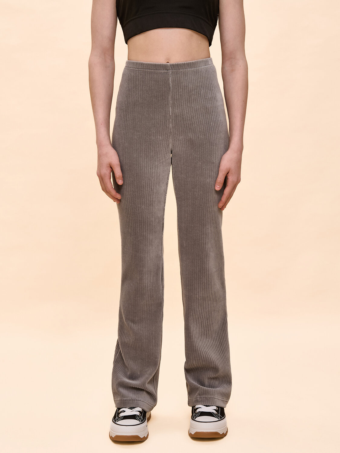Брюки клёш для девочки из трикотажного вельвета. Актуальные вельветовые брюки-буткат в рубчик подарят ребёнку комфорт и свободу движения. Одна из наиболее модных моделей сезона — штаны, плотно прилегающие на бёдрах и расклешённые от колена. Широкая резинка в поясе не давит и не перекручивается. Изделие лаконичного дизайна, без принта. Брюки неприхотливы в уходе. В составе ткани (эластичный трикотаж) преобладает высококачественный хлопок — штаны мягкие и прекрасно пропускают воздух, давая коже ребёнка дышать. Благодаря полиэстеру и эластану изделие легко стирается, быстро сохнет, хорошо тянется и при этом сохраняет отличную форму в течение длительного времени. Брюки детские выполнены в универсальном тёмно-сером цвете. Они легко комбинируются с различными футболками, джемперами, толстовками, куртками. В линейке представлены следующие размеры: 1 (86): 2 (92): 3 (98): 4 (104): 5 (110): 6 (116): 7 (122): 8 (128): 9 (134): 10 (140): 11 (146). Отличные брюки на девочек дошкольного и младшего школьного возраста, а также девочек-подростков. Брюки в рубчик клёш идеальны для детского сада, школы, прогулок, отдыха, а также для дома. Их можно носить круглый год: летом, осенью, зимой, весной и демисезон. Детские брюки для девочки — замечательный подарок дочери, внучке или сестре на День рождения и любой другой праздник.