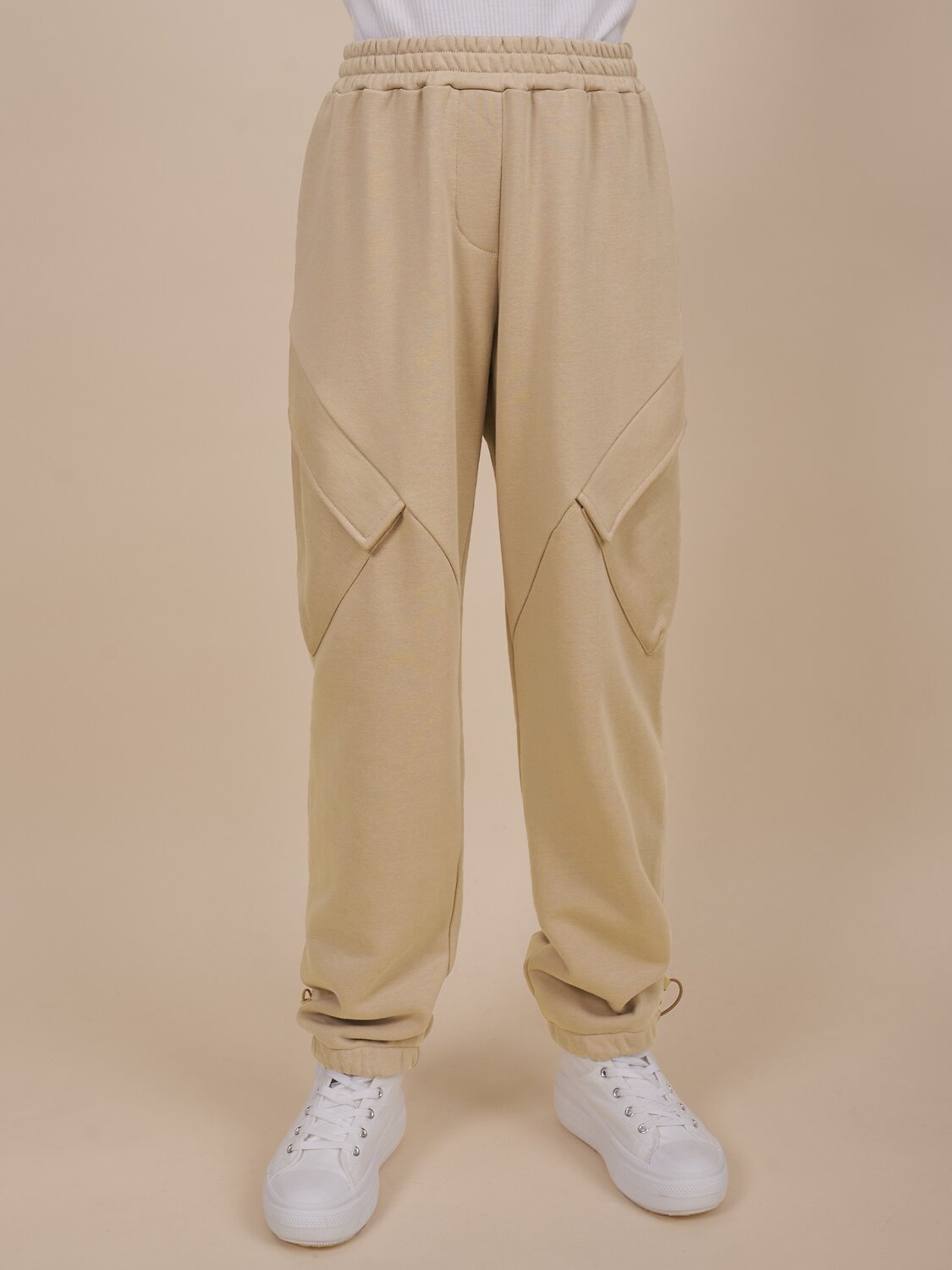Детские брюки карго для девочки. Комфортные штаны трендового широкого силуэта не будут стеснять движений ребёнка. По переду наклонные швы, в области колена вытачки — это создаёт актуальную форму брюк. Оригинальные карманы с вытачками закрываются клапанами на велькро (липучку) — просто и быстро открываются и закрываются, даже в перчатках. Широкая резинка в поясе не давит и не перекручивается. В поясе предусмотрен шнурок, с помощью которого можно регулировать объём и посадку брюк. По низу штанин также широкая резинка с возможностью регулировки эластичным шнурком со стопперами по бокам. Брюки детские выполнены из футера, что помогает изделию сохранить актуальную форму и объём, а также обеспечивает тепло. Штаны однотонные, без принта. За ними легко ухаживать. В составе ткани преобладает высококачественный хлопок — брюки мягкие и воздухопроницаемые. Благодаря полиэстеру изделие легко стирается, быстро сохнет и надолго сохраняет отличную форму. Брюки широкого кроя выполнены в классическом чёрном цвете и трендовом бежевом (песочном)— их легко сочетать с различными футболками, толстовками, худи и куртками. Размерный ряд: 2 (92): 3 (98): 4 (104): 5 (110): 6 (116): 7 (122): 8 (128): 9 (134): 10 (140): 11 (146). Идеальные брюки для девочки, подойдут как девочкам дошкольного и младшего школьного возраста, так и девочкам-подросткам. Брюки карго детские можно носить в детский сад, на прогулки, они подходят для активного отдыха, спорта, дома. Для круглогодичного применения: летом, осенью, зимой, весной и демисезон. Это прекрасный подарок дочери, внучке или сестре на любой праздник или просто в качестве знака внимания и заботы. Выбирайте нужный размер по таблице размеров на фото. Цвет товара на экране вашего устройства может отличаться от цвета изделия вживую.