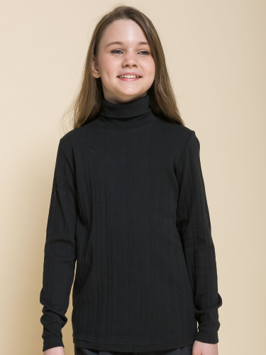 Водолазка из ажурного трикотажа для девочки. В составе ткани преобладает хлопок — изделие мягкое, воздухопроницаемое и комфортное для ребёнка. Благодаря эластану водолазка тянется и при этом сохраняет форму даже после многочисленных стирок. В джемпере комфортно в течение всего дня, ничего не давит, не колет, не сковывает движения. Ажурная фактура деликатно украшает эту модель лаконичного дизайна, делает её нежной и женственной. Воротник-гольф: высокий, мягкий, плотно прилегает к шее. Красивый и практичный вариант для школьной формы. Отлично сочетается как юбками, сарафанами, так и с брюками.