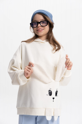 Свитшот с принтом зайчика: ушки и лапки из меха, подходит для девочки подростка. Модный джемпер из высококачественного хлопкового футера можно носить круглый год весной, летом, осенью и зимой. Кофта с капюшоном подойдет для повседневной носки на занятия, в школу, в сад и на прогулку. Идеально для подарка на любой праздник.