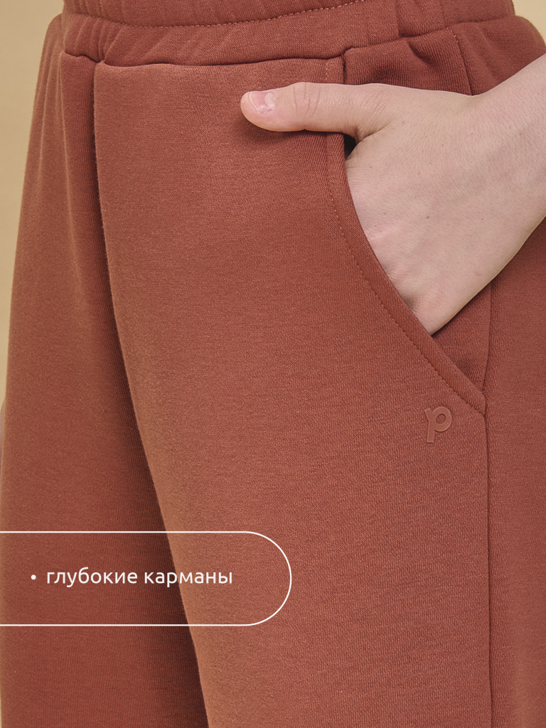 Джоггеры из футера с начесом для девочек и мальчиков. Ткань мягкая, теплая, дышащая, с большим содержанием хлопка в составе, приятная на ощупь и простая в уходе. Широкая резинка по линии талии отлично сидит и не натирает, объем регулируется внутренним шнуром. Функциональные карманы сбоку для важных мелочей. Деликатная изюминка модели - силиконовая буква P из логотипа бренда на левом кармане. Джоггеры отлично комбинируются с толстовкой и худи. Благодаря особенностям свободного кроя долго “растут’ вместе с ребенком. Идеальны для активного детства – подходят на каждый день, для учебы и занятия спортом. Состав: 60%хлопок 40%полиэстер Возрастная группа: Junior Сезон: Осень Год: 2022 Пол: Дети