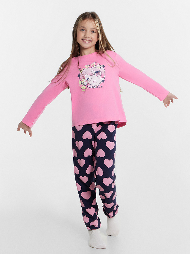 Уютная пижама для девочек из высококачественного хлопка идеально подходит для комфортного отдыха и сна. Модель состоит из джемпера и брюк, которые вместе создают гармоничный и стильный комплект. Круглая горловина и длинные рукава джемпера обеспечивают тепло и уют, а длинные брюки, слегка зауженные к низу, добавляют элегантности. Натуральный хлопковый материал, использованный в этой пижаме, обладает особой мягкостью и приятной текстурой, которая бережно окутывает нежную детскую кожу. Ткань отличается превосходной гигроскопичностью, поддерживая оптимальный микроклимат и предотвращая перегрев. Конструкция пижамы тщательно продумана с учетом особенностей детской анатомии, обеспечивая свободу движений и комфорт во время сна. Свободный крой и эластичный пояс брюк гарантирует максимальную свободу и удобство. Эта пижама представлена в широком размерном и цветовом ряде, что позволяет подобрать идеальный вариант для каждого ребенка.