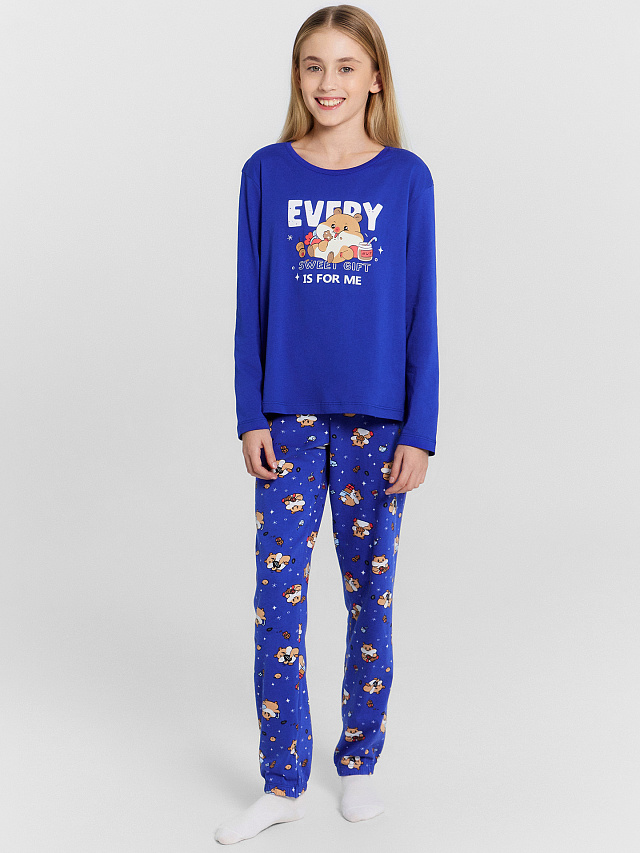Комплект для девочек синий с принтом