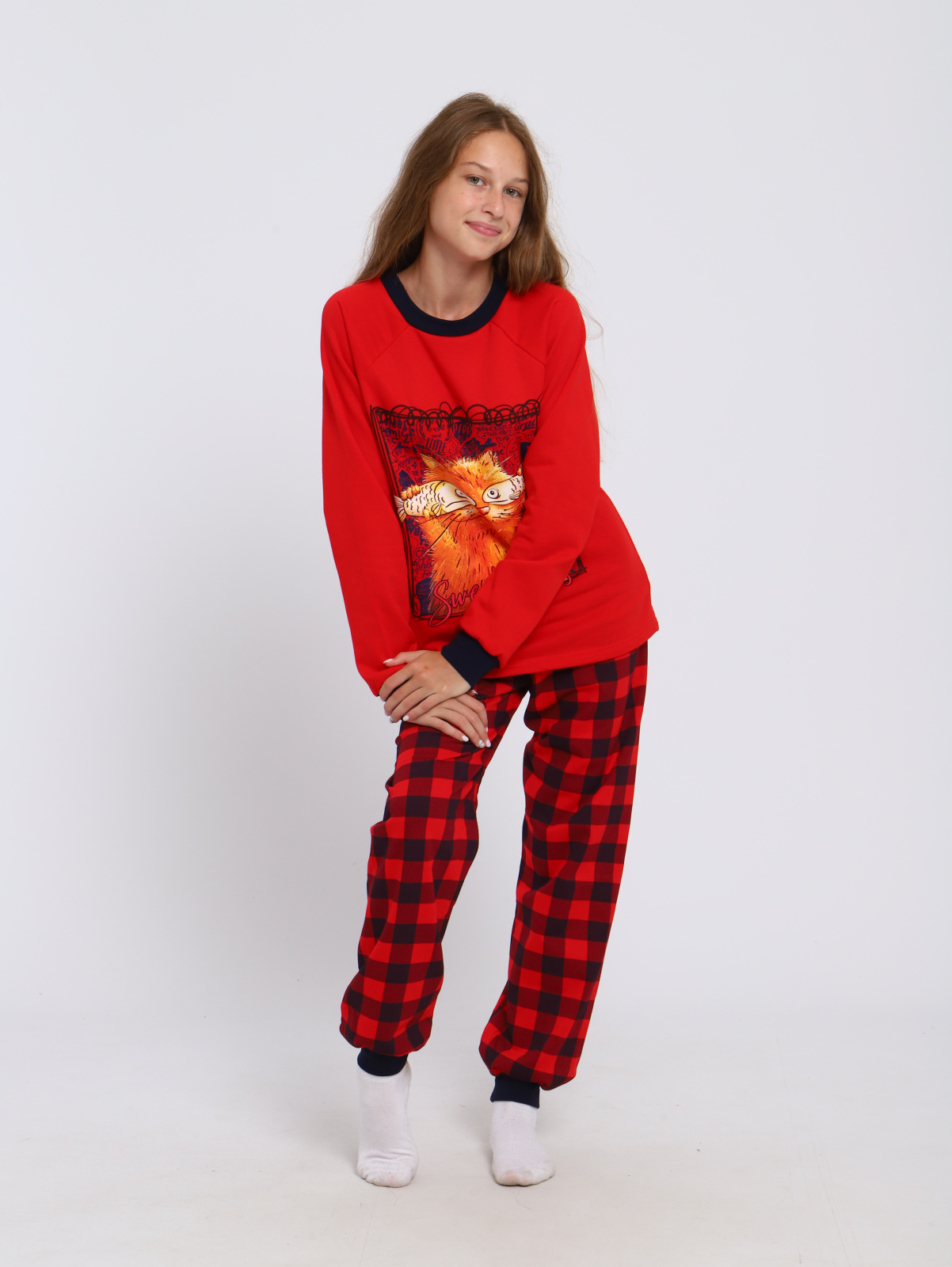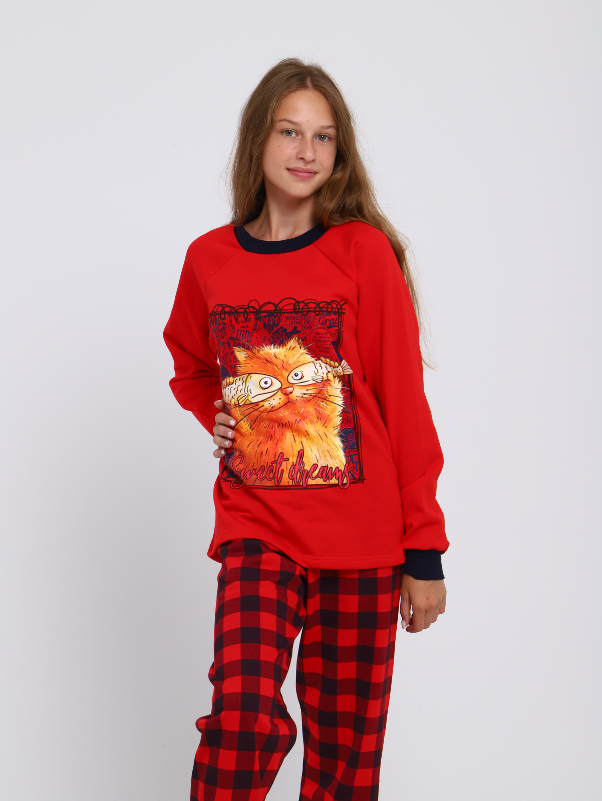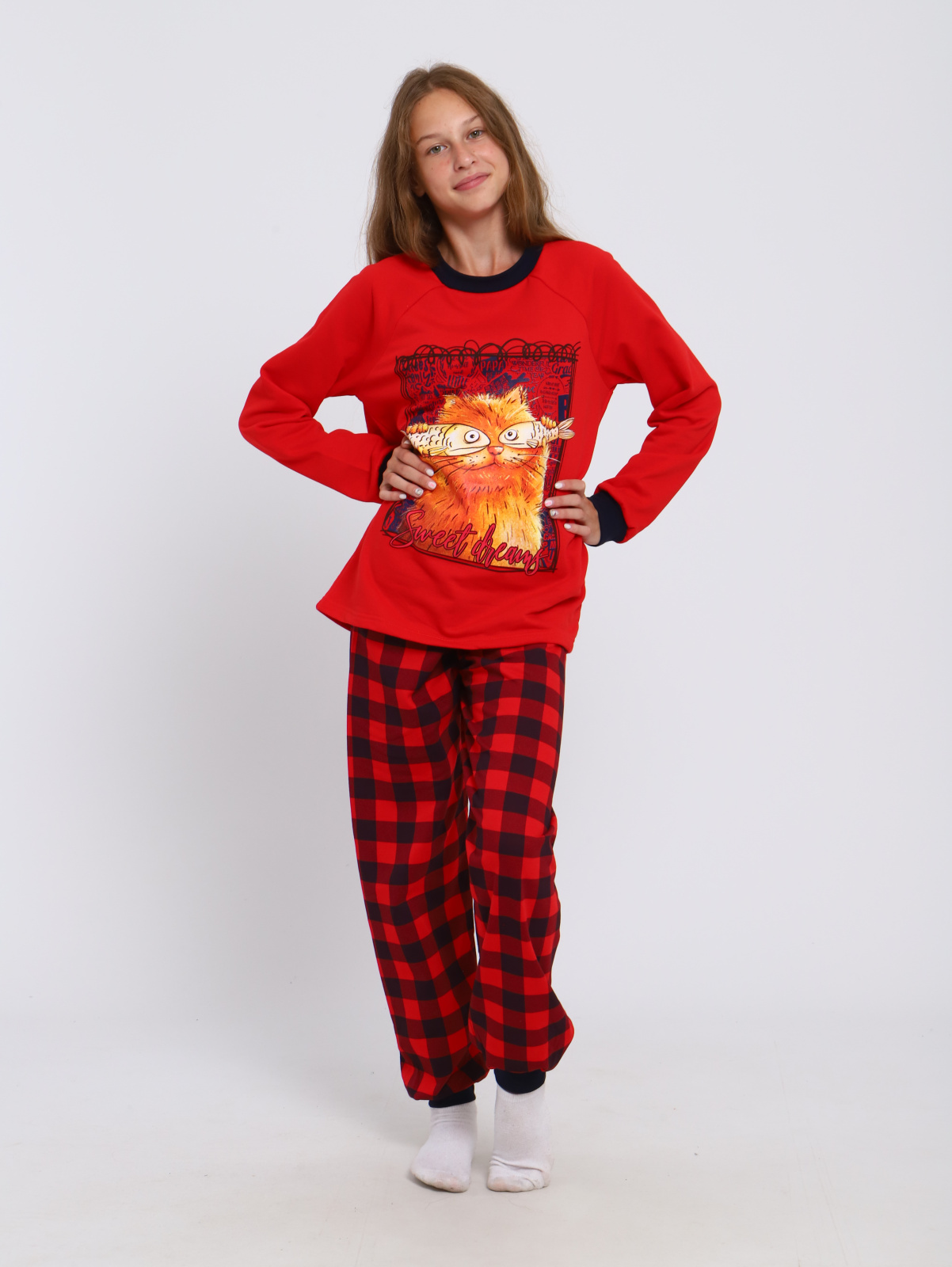 Детская яркая пижама для мальчиков и девочек. Брюки свободного кроя, снизу на манжете. Кофта с О-образной горловиной, рукав-реглан, на полочке оригинальный и забавный принт. Подростковая пижама для мальчиков и девочек с принтом из натурального хлопкового легкого трикотажа . Хлопковый костюм подростковый для дома, может использоваться не только как пижама, но и как уютный домашний костюм. Пижама детская состоит из кофты с длинным рукавом и брючек. Домашний костюм для подростка пошит в свободном полуприлегающем стиле. Пояс брюк пижамки для детей школьников на мягкой эластичной резинке, не давит. Брючный домашний костюм отлично подойдет не только для сна. Комплект может быть очень удобной и комфортной домашней одеждой. В двойке для дома классно играть в игры с домочадцами или делать уроки. Утренний завтрак в атмосфере уюта и заботы с любимыми в этой пижамке будет идеален. Атмосфера счастья складывается из таких мелочей, как удобная одежда с позитивным рисунком, улыбка мамы, запах какао... Трикотаж костюмчика для дома - дышащий, хлопковый. Поскольку хлопок дает усадку, мы заложили в лекала припуск на усадку, что бы после стирки длина не оказалась коротковатой. Пижама демисезонная. Она может использоваться круглогодично. Пижаму выбирают и мальчики и девочки. Это прекрасный полезный подарок ! Подарите заботу и любовь с этой замечательной пижамкой! Домашний комплект для подростков с начесом внутри согреет в межсезонье. Одежда для сна модной расцветкой поднимет настроение и будет прекрасным подарком мальчику, сыну или внуку на день рождения. Пижамы произведены в России, из качественного натурального хлопка и имеют все необходимые сертификаты. Наша пижама детская идет в размер. Для более уверенного выбора, воспользуйтесь удобной табличкой с замерами изделий в сантиметрах на одном из фото. Подходит для фотосессий. У пижам отличное качество, подтвержденное тысячами продаж и сотнями положительных отзывов. Носите с удовольствием и возвращайтесь к нам снова, чтобы купить еще один дизайн!