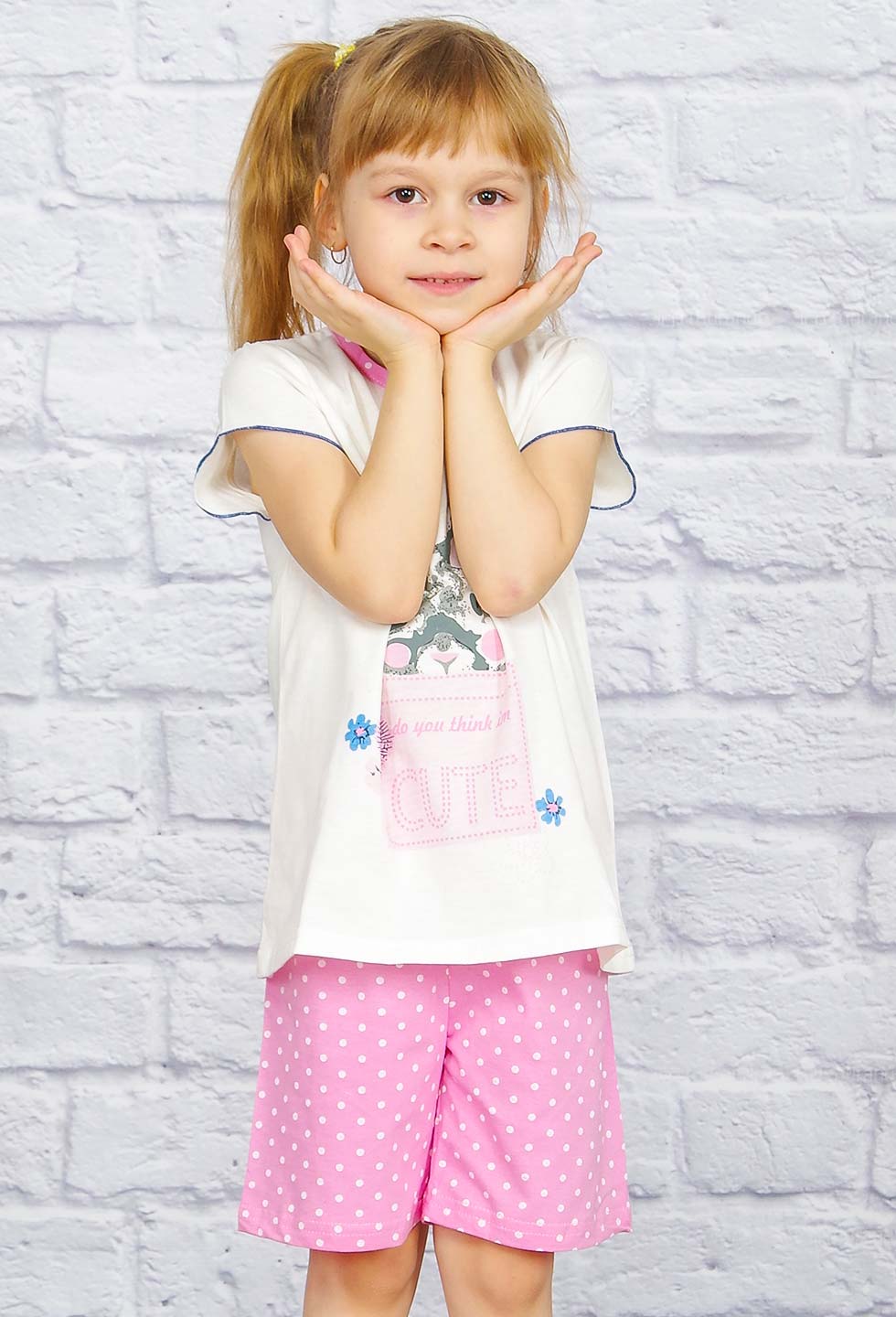 Удобный вариант для сна и отдыха - это хлопковый костюм с шортами и футболкой. На полочке печатный принт "пушистик кролик".