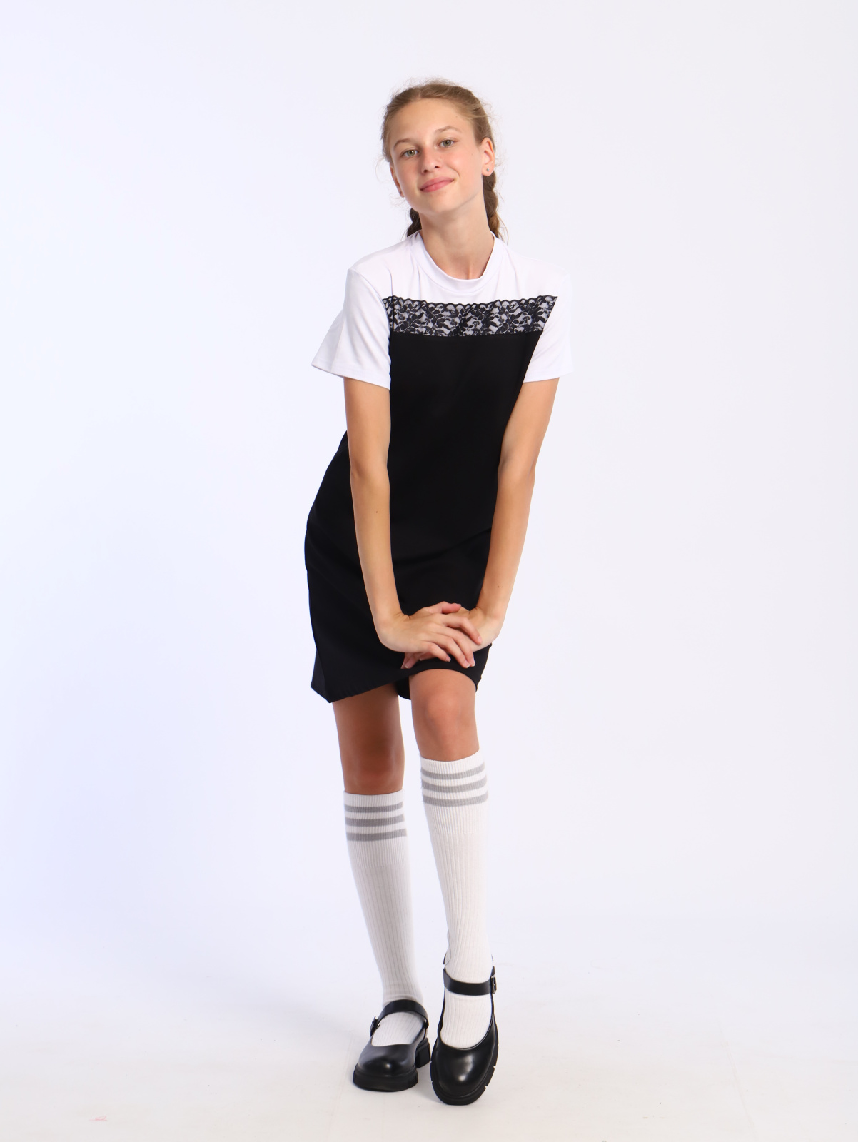 Подростковое платье прямогокроя с отрезной кокеткой по линии груди.