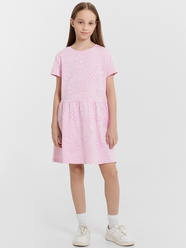 Повседневное хлопковое платье для девочек. Модель акцентирует внимание на талии. Рукава короткие, вырез круглый, не глубокий. Длина платья выше колена. Стильно!