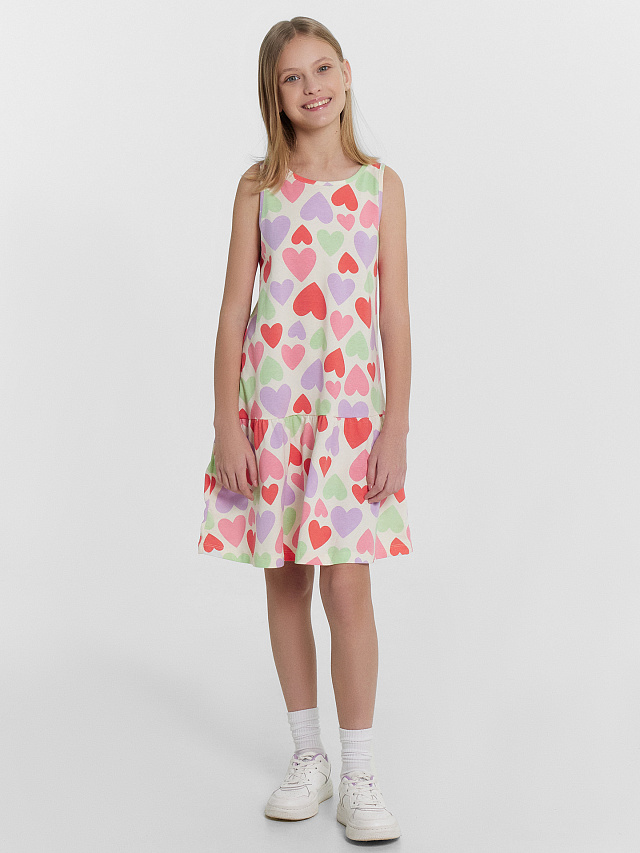 Представляем очаровательное платье для девочек А-силуэта с изысканной оборкой на юбке. Длина платья немного выше колена, что придает ему милый и нежный вид. Круглая горловина и аккуратно обработанный подгибкой низ изделия завершают гармоничный образ. Модель выполнена из высококачественной хлопковой кулирки, что гарантирует комфорт и мягкость на протяжении всего дня. Это платье станет идеальным выбором для повседневных прогулок или праздничных мероприятий, добавляя нотку элегантности и стиля в гардероб каждой девочки. Добавьте это платье в гардероб вашей маленькой модницы, и она будет выглядеть восхитительно в любой ситуации!